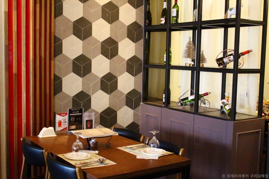 핏제리아루카 구리갈매점은 구리시 갈매동에 있는 이탈리안 레스토랑이다. 경춘선 갈매역에서 300여 미터 떨어져 있어 대중교통 접근성이 좋다. 예쁘게 잘 조성된 아파트 상가 2층에 있어 찾기 쉽다. 주차는 갈매역 아이파크 지하주차장에 하면 3시간 무료이다. 내부는 층고가 높고 천장 조명이 특이하며 은은해서 분위기가 아늑하다. 나폴리 전통방식의 화덕피자와 생면을 이용한 파스타가 대표 메뉴이지만, 스테이크도 인기 메뉴다. 저녁에 와인을 한잔해도 좋은 분위기의 이탈리안 레스토랑이다. 동구릉, 태릉골프장과 가깝다.