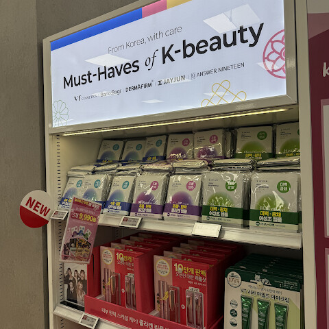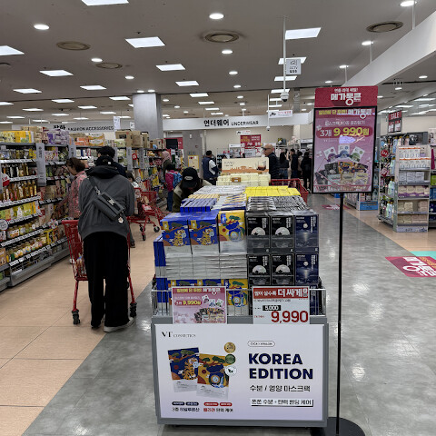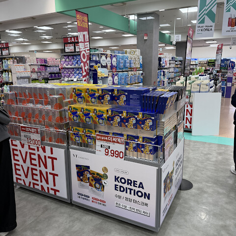 한국의 다양한 슈퍼마켓 상품을 쉽게 구매할 수 있습니다. 많은 관광객들이 찾는 곳이며, 면세 셀프 계산대도 있습니다.