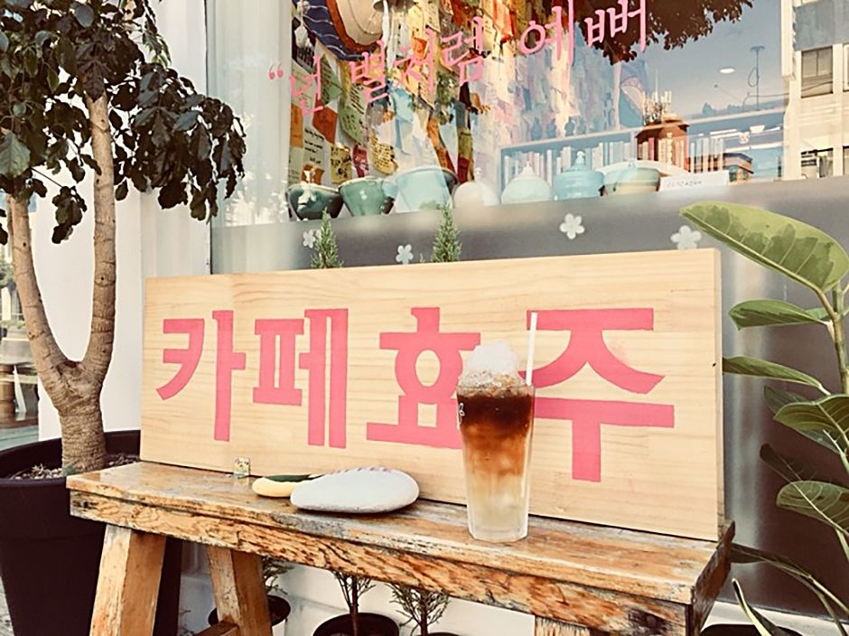 카페효주는 관덕정 근처 무근성길에 있다. 시그니처 메뉴인 비행기라떼는 카페라떼 위에 생크림을 올리고 초콜릿 파우더로 비행기를 그려 준다. 착즙 오렌지주스에는 오렌지 3개가 들어가고, 초록케일사과주스는 12브릭스 사과와 케일, 바나나로 만든다. 일찍 문을 여는 카페효주에는 샌드위치, 버터그릴에그마요토스트 등이 있어 아침으로 먹기 좋고, 맛집으로 유명한 우진해장국 옆에 있어 해장국 손님들이 커피를 마시기 좋다. 주변 여행지로 제주목관아, 제주원도심 등이 있다.