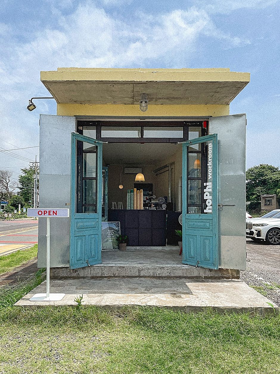 홉히워크룸은 서귀포 법환초등학교 근처에 있다. 디카페인 커피 브랜드로 테이크아웃만 가능하고, 평일에는 11시에서 15시 사이에만 운영한다. 모든 커피는 융드립으로 브루잉하고, 시그니처 메뉴인 크림커피 꼬소와 크림커피 베리가 있다. 매장에서 로스팅한 디카페인 원두와 드립백, 미니드립백, 연필 등을 구매할 수 있으며 인터넷으로도 주문할 수 있다. 주변 여행지로 법환포구, 중문관광단지 등이 있다.
