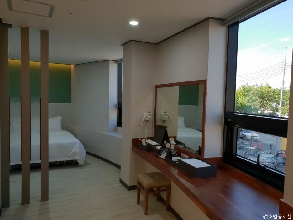 강원도 춘천시 의암호 공지천에 있는 숙박업소로 2018년 12월 새롭게 문을 열었다. 바로 옆 건물에 편의점과 결혼식장, 식당이 있다. 객실은 마운틴뷰와 파크뷰가 있는데, 파크뷰가 공지천과 북한강이 보이는 곳이다. 가까이에 공지천유원지가 있고, 공원 앞에 북한강을 끼고 걸을 수 있는 수변 산책로가 있어 가벼운 산책이나 조깅하기 좋다. 산책로에서 보이는 다리를 건너면 하중도가 있다. 공지천에서는 오리보트를 대여하여 탈 수 있어 가족이나 커플이 즐기기에 좋다. 강변이 가까워 노을 구경하기 좋은 곳이다. 가까이에 춘천수변공원, MBC 춘천문화방송국, 공지천 조각공원 등이 있다.