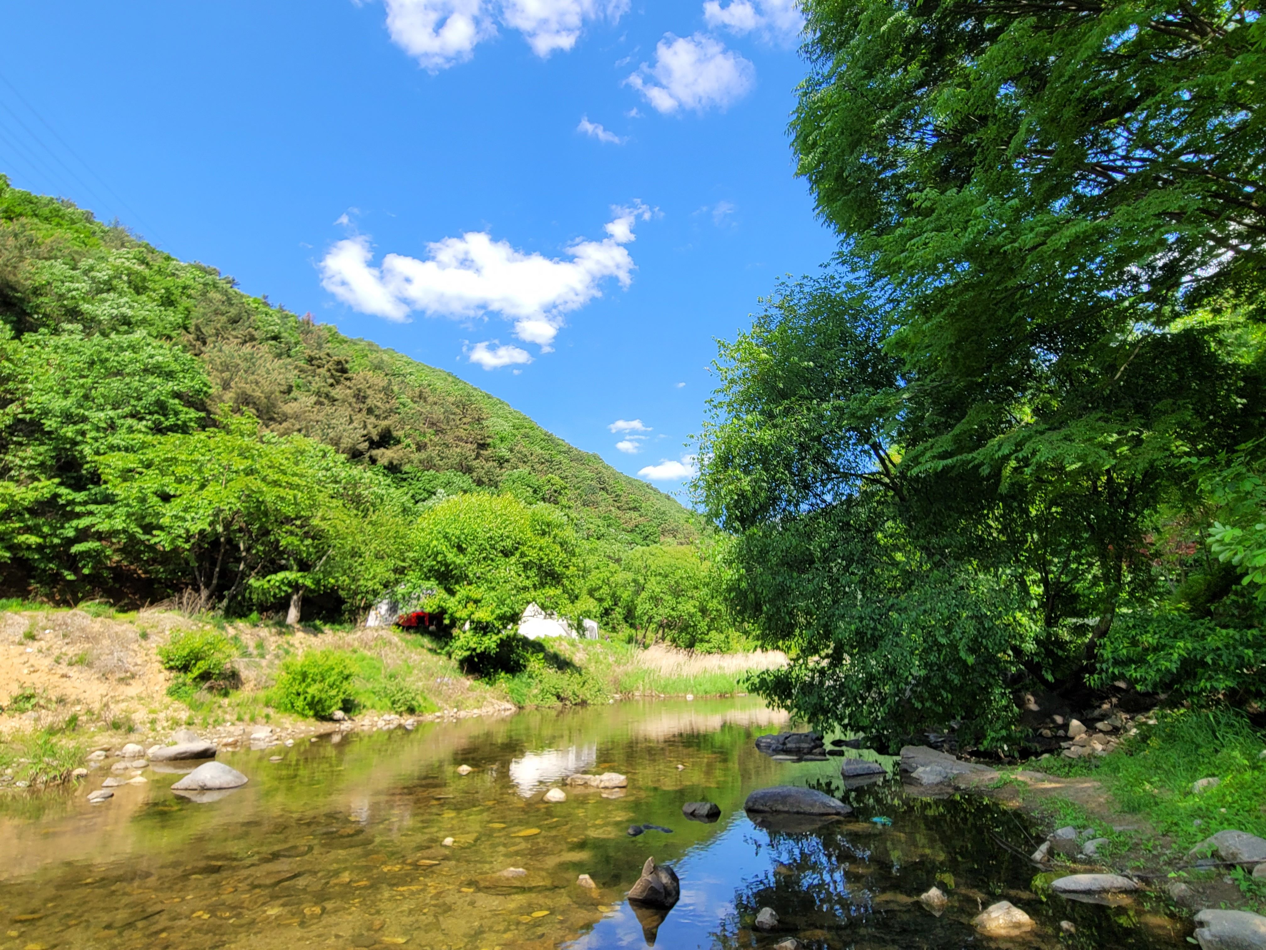 계곡이 있어서 더운 여름이 되면 물놀이도 가능해요.
