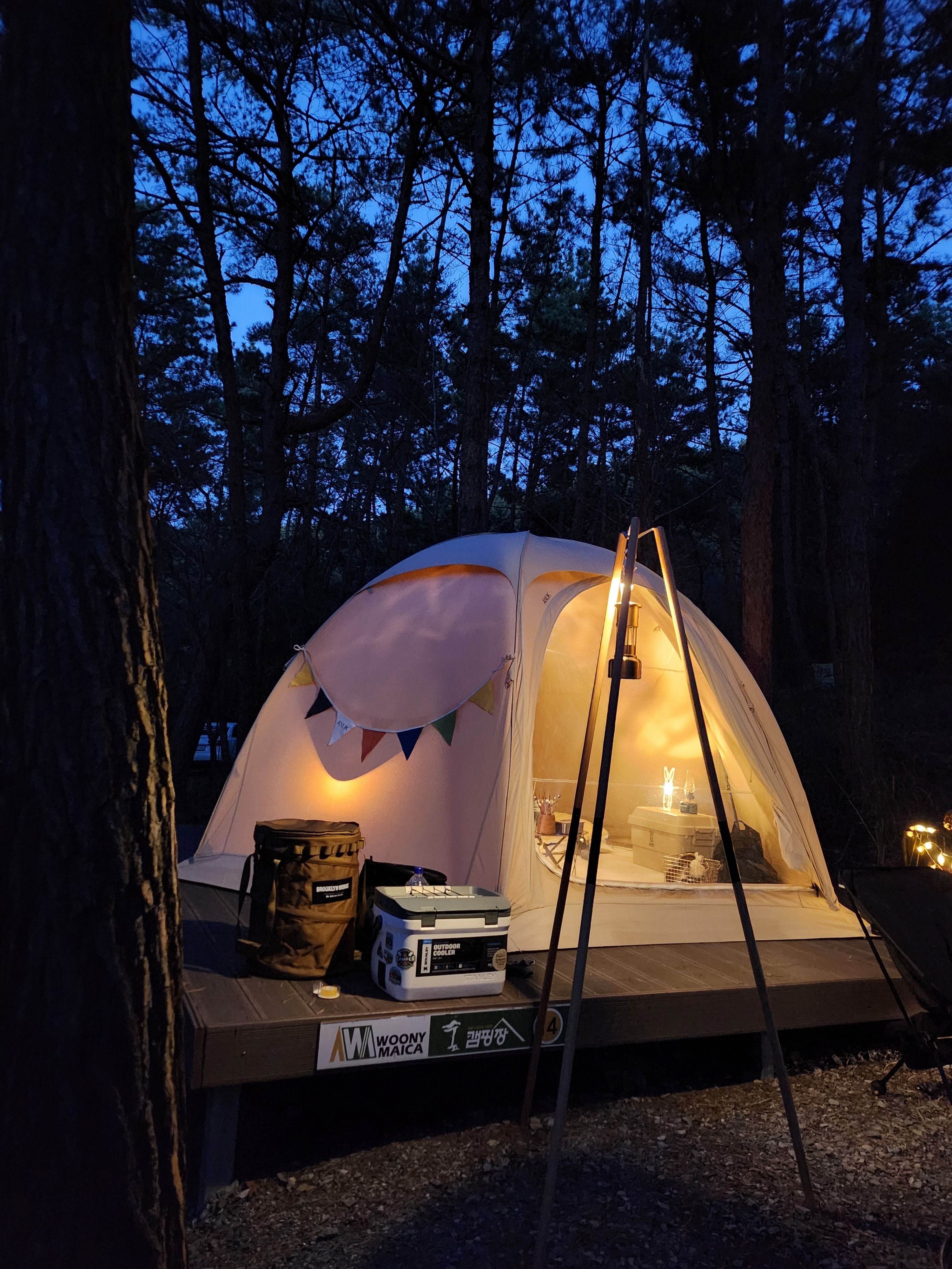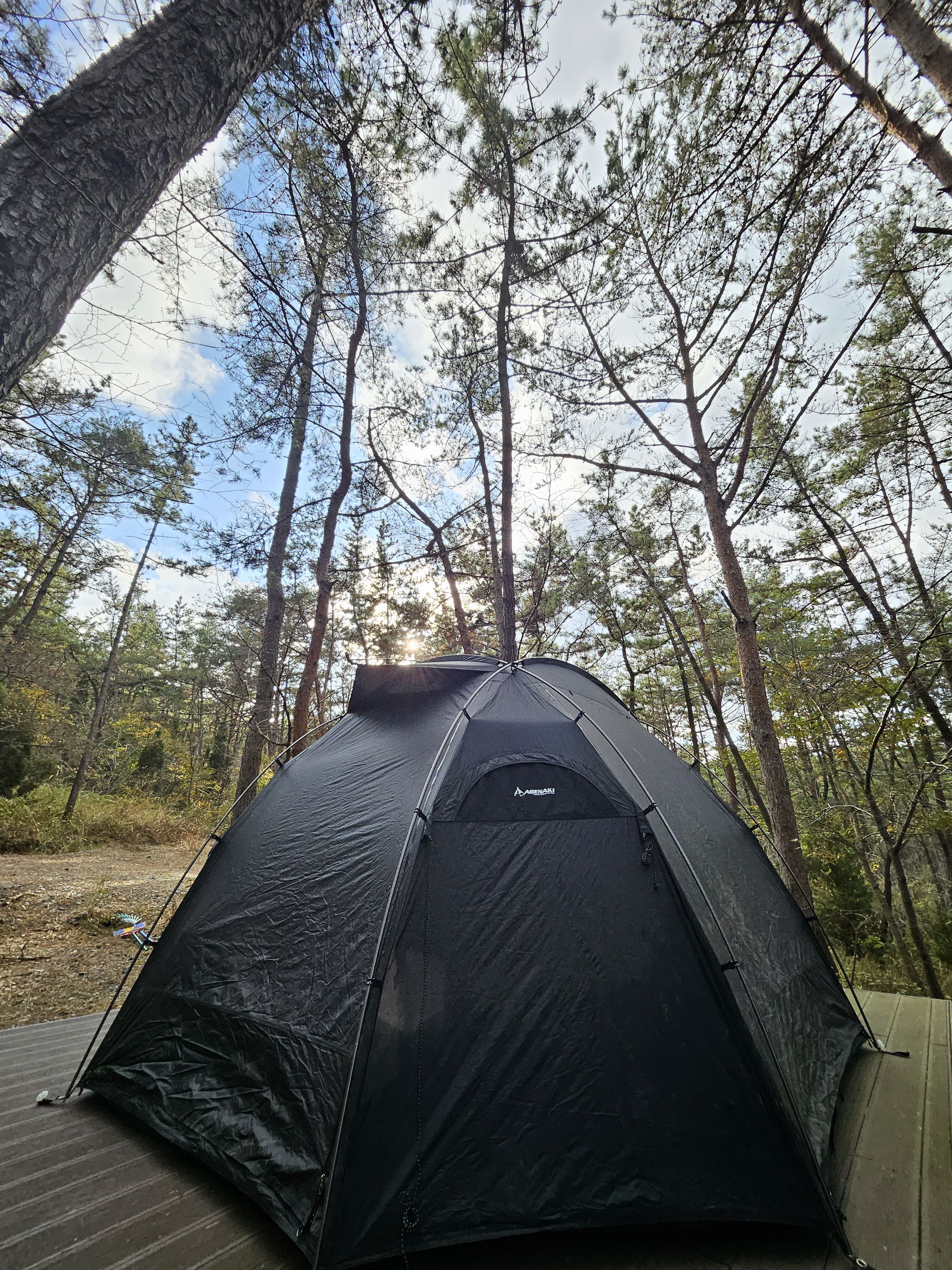 사이트 간격도 계단식이라 멀고 너무 조용히 잘 즐겼습니다. 솔캠성지 답게 매너들이 너무 좋았어요.