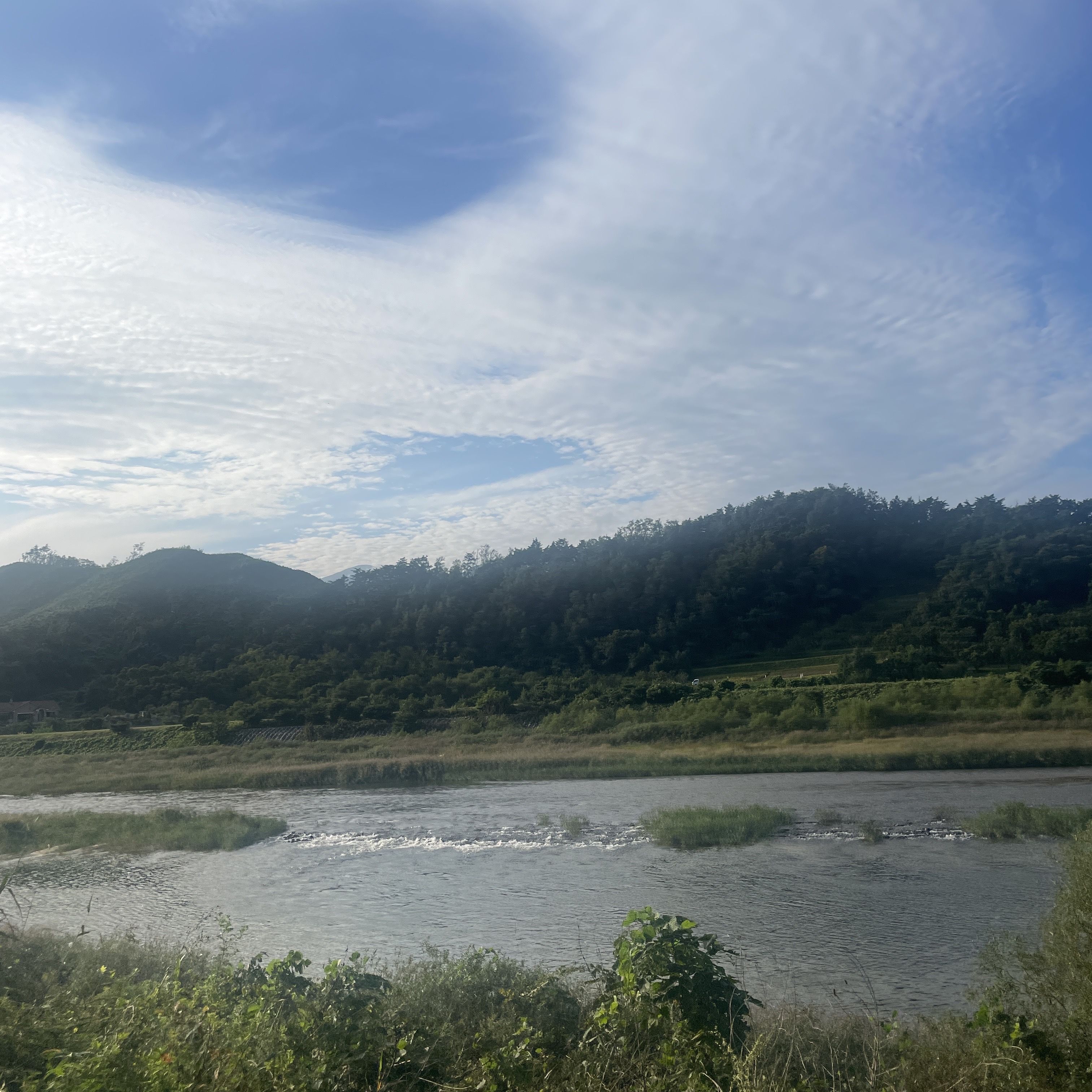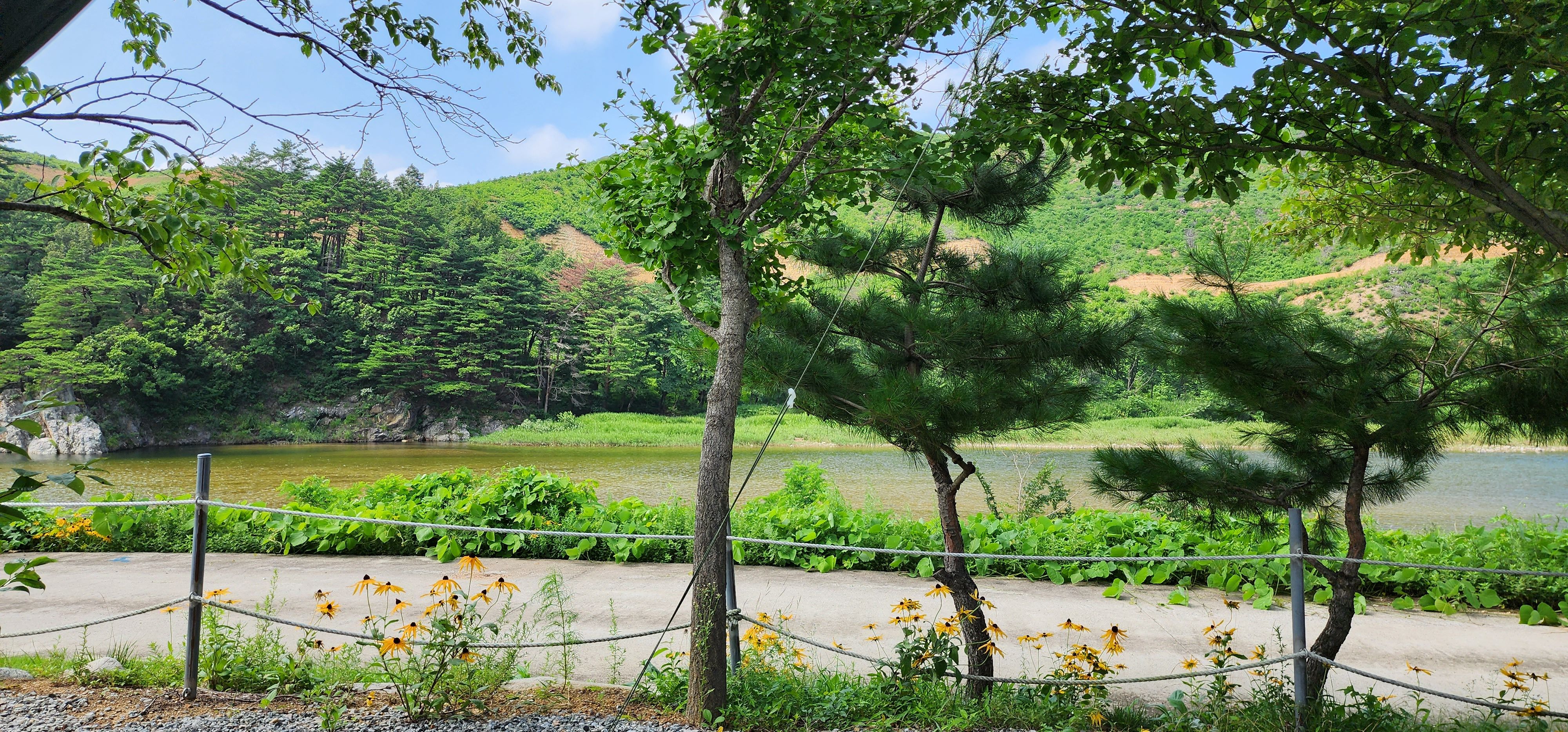 강이 바로 앞에 있어서 산책하기 좋고, 아이들이 있으면 물놀이 하기도 좋을 것 같네요.