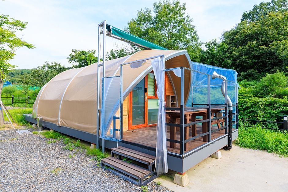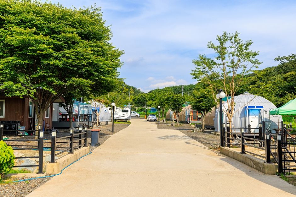 하늘아래 야영장은 대구 수성구 범물동에 자리 잡았다. 대구시청을 기점으로 15km가량 떨어졌다. 자동차를 타고 지범로와 진밭길을 번갈아 달리면 닿는다. 도착까지 걸리는 시간은 30분 안팎이다. 캠핑장에는 여러 가지 카라반 14대가 갖춰져 있다. 카라반 내부에는 침대, 냉장고, TV, 화장실, 샤워실 등 일상생활을 하기에도 무리가 없을 정도의 시설이 들어차 있다. 부대시설로는 한여름 무더위를 날리기 그만인 물놀이장 등이 있다. 주변에 워터파크 스파밸리가 있어 연계 여행이 수월하다.