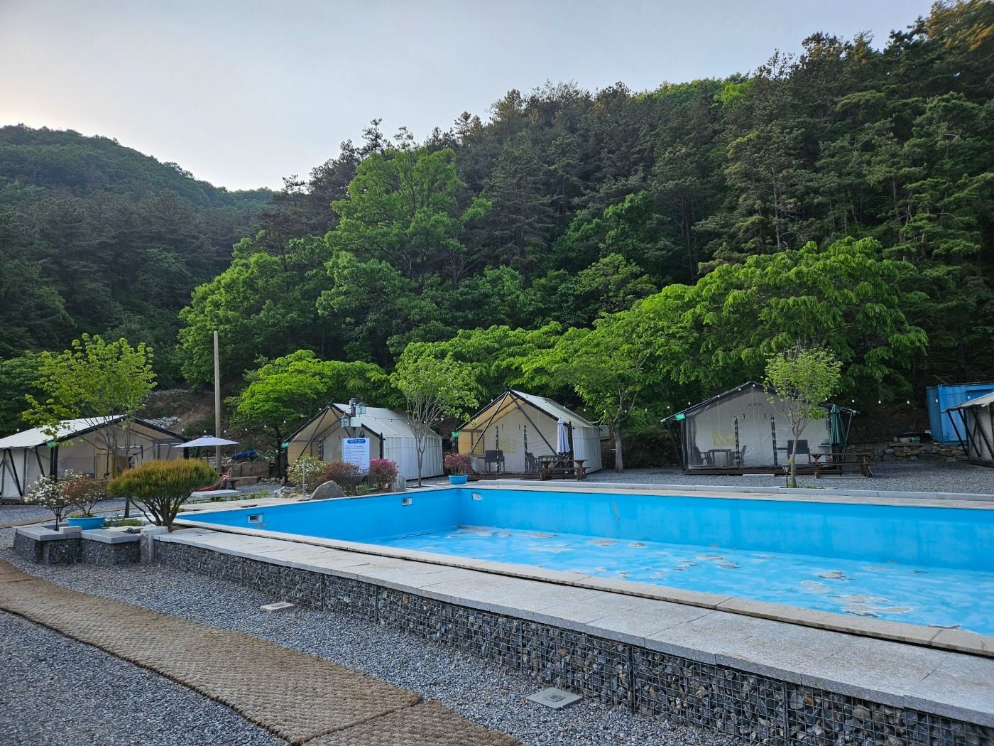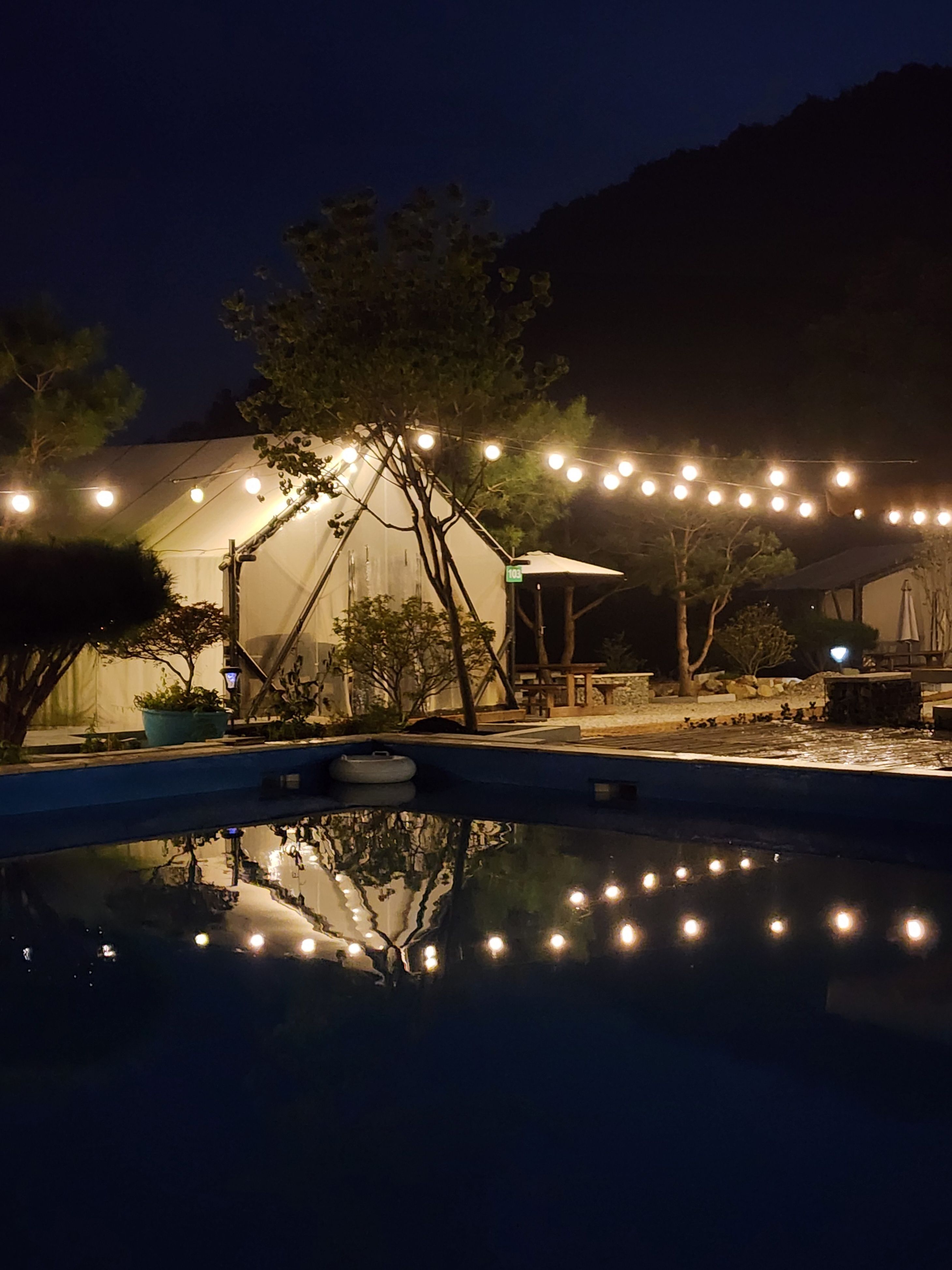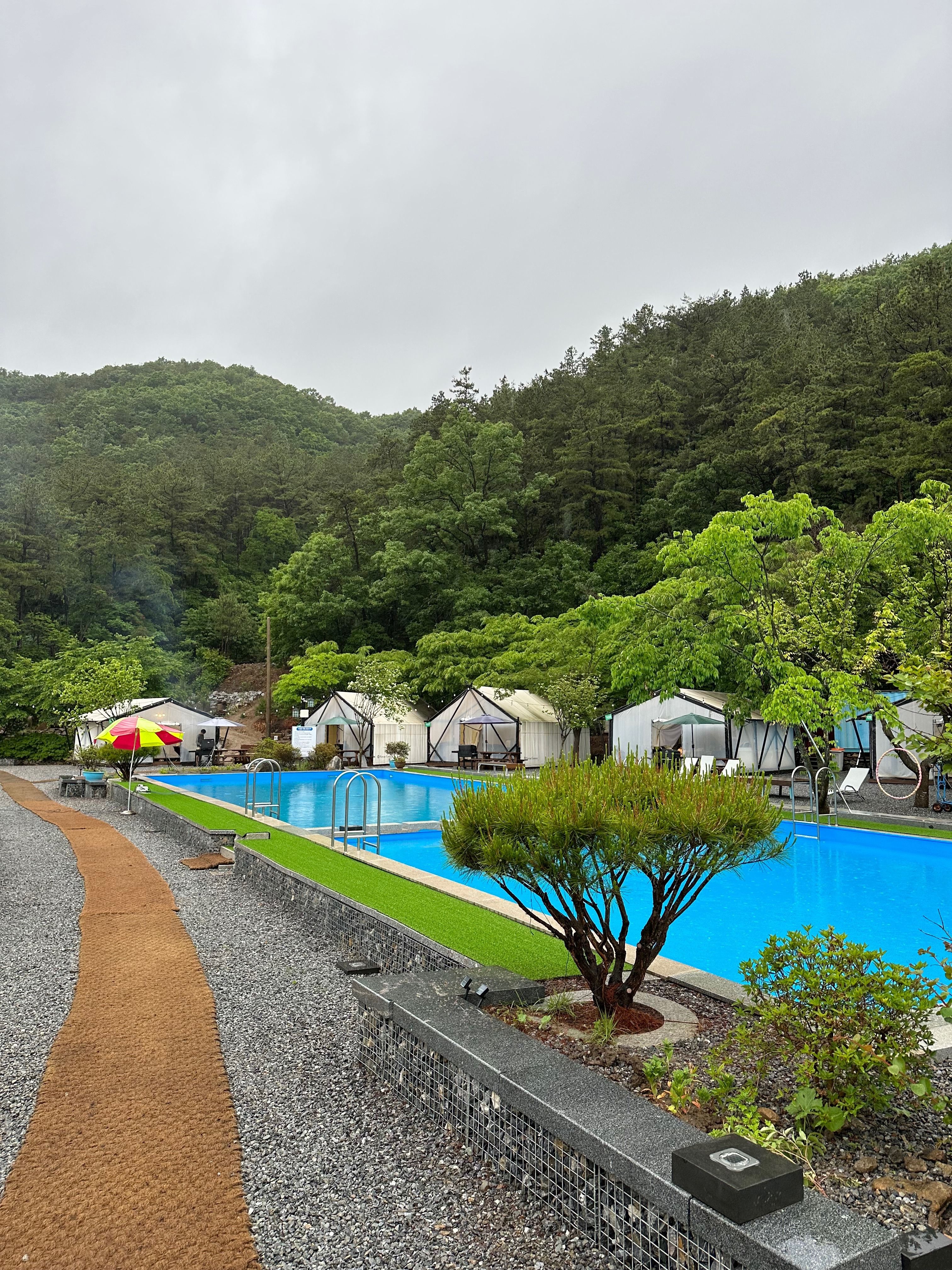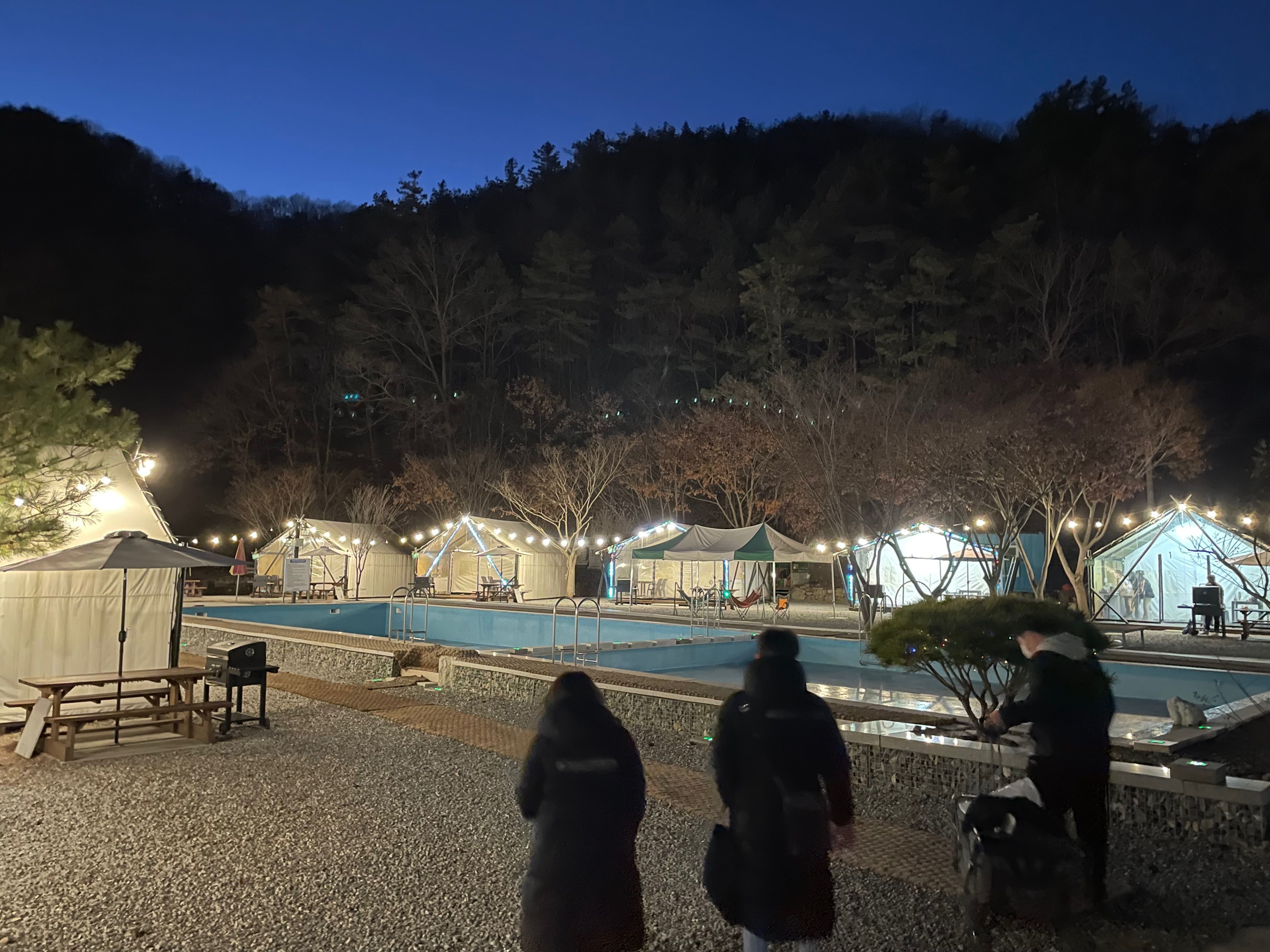 보통 글램핑장은 샤워실, 화장실을 관리하기 힘들건데 여기는 너무 깔끔하고 깨끗했어요 수영장도 있어서 놀기 너무 좋았고 밤에 불도 켜지니까 너무 예뻐요 옆에 계곡 물 흐르는 소리까지 완벽합니다 잘 놀다 가요 :)
