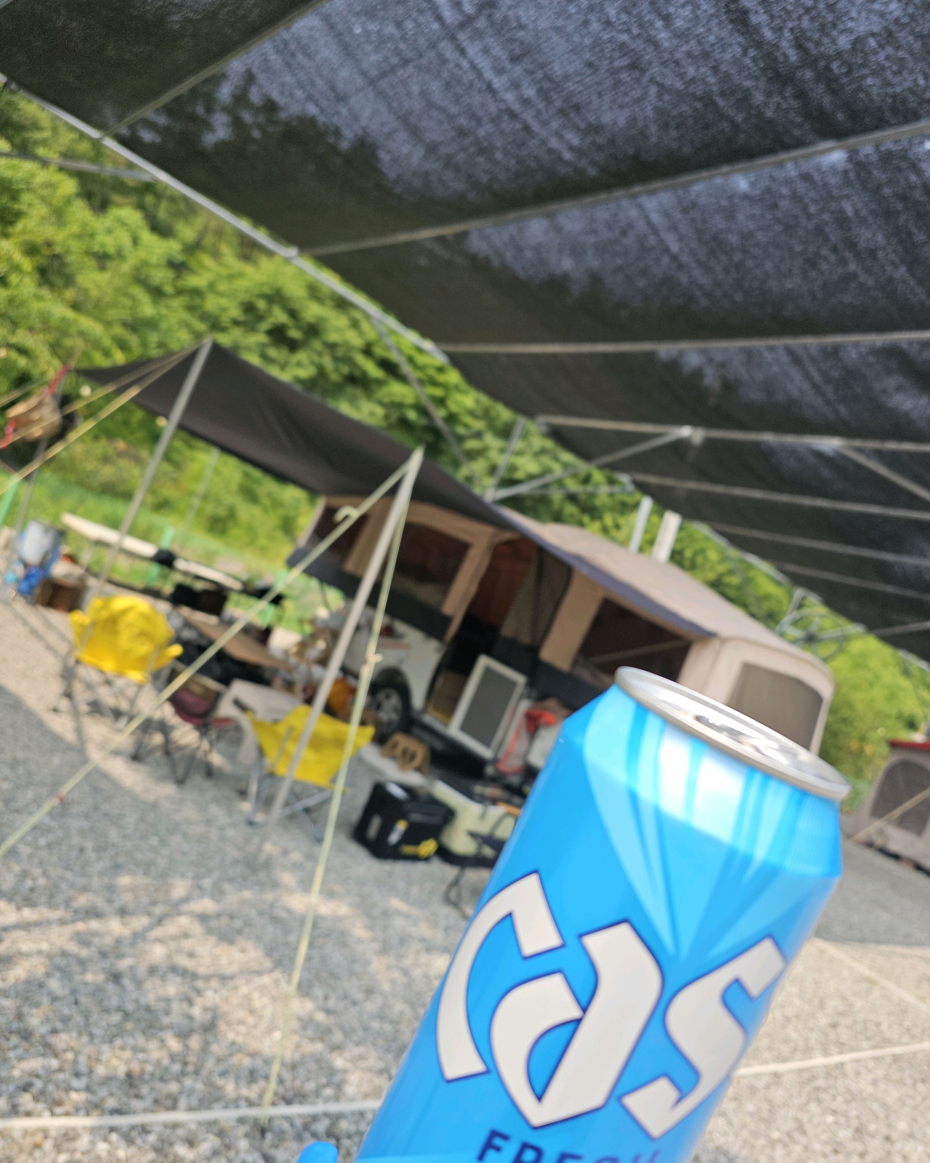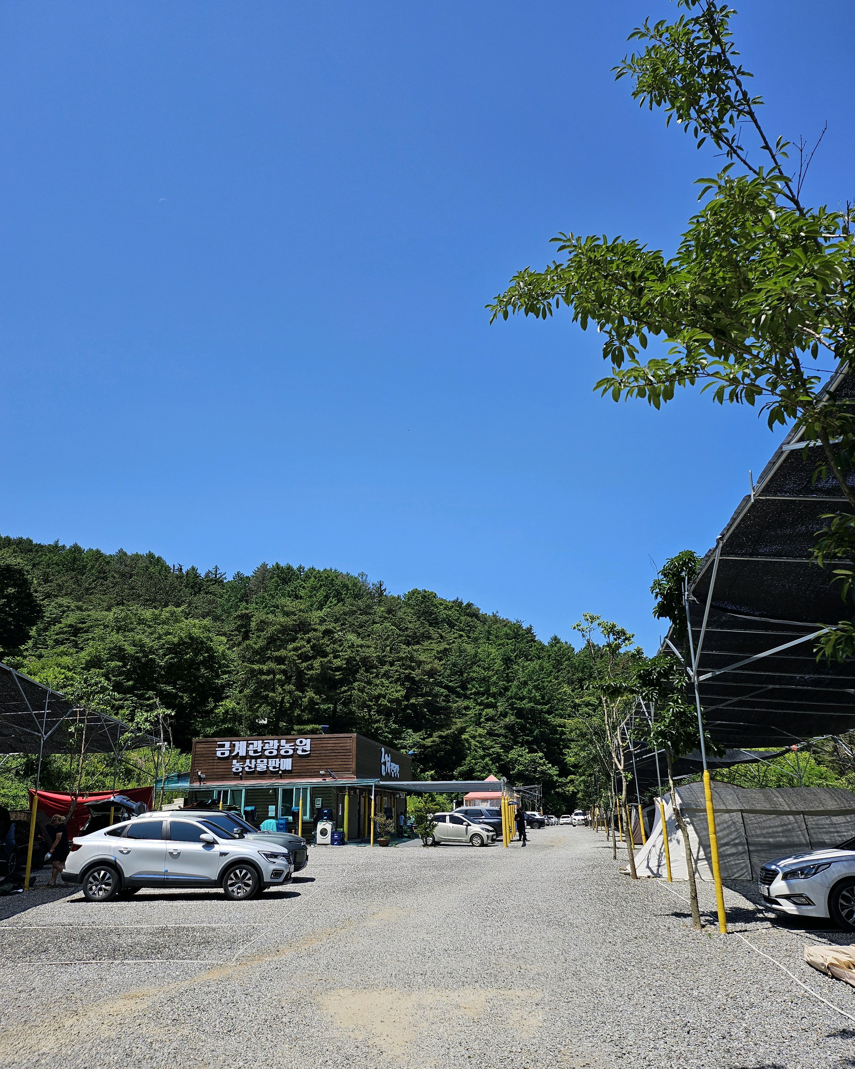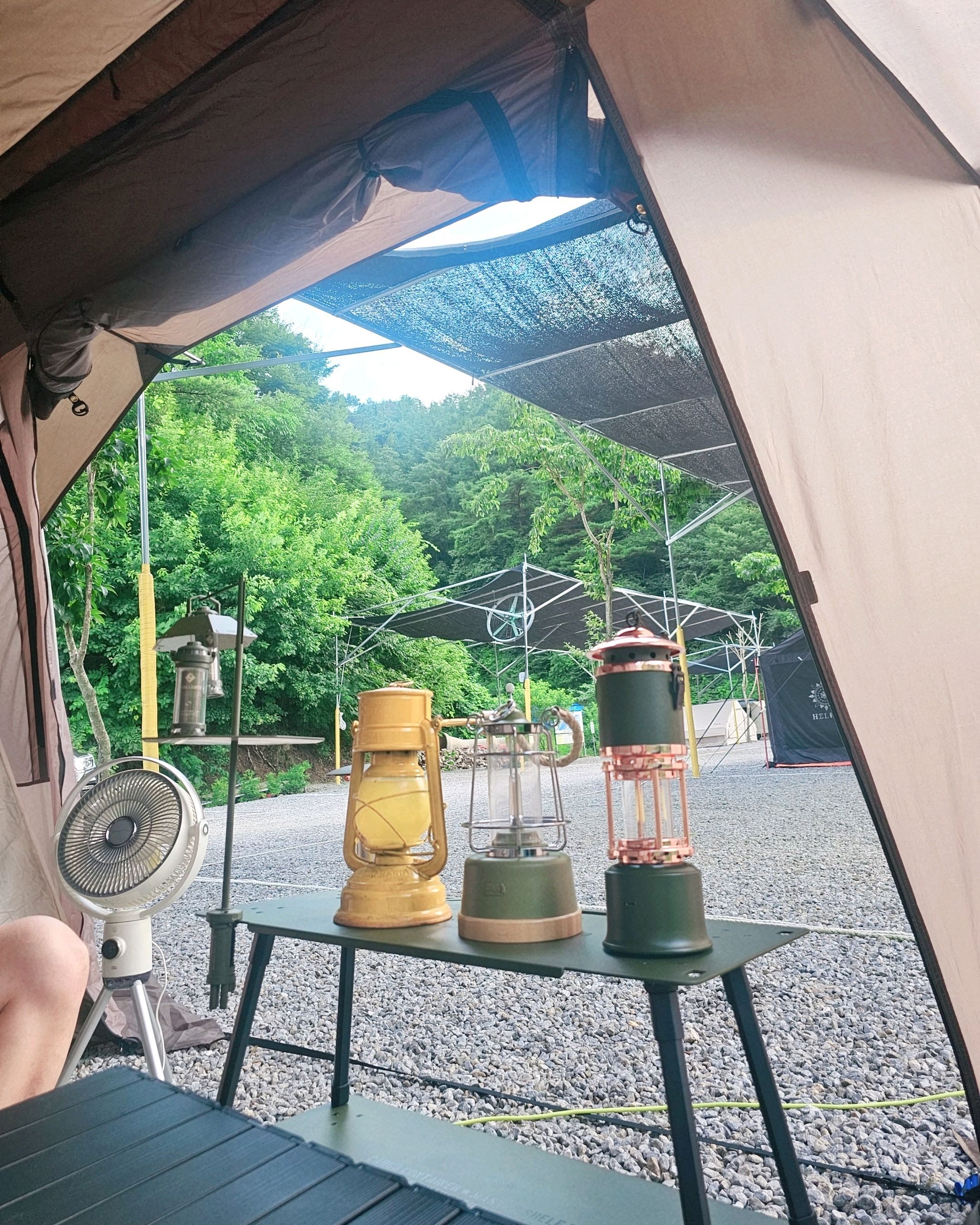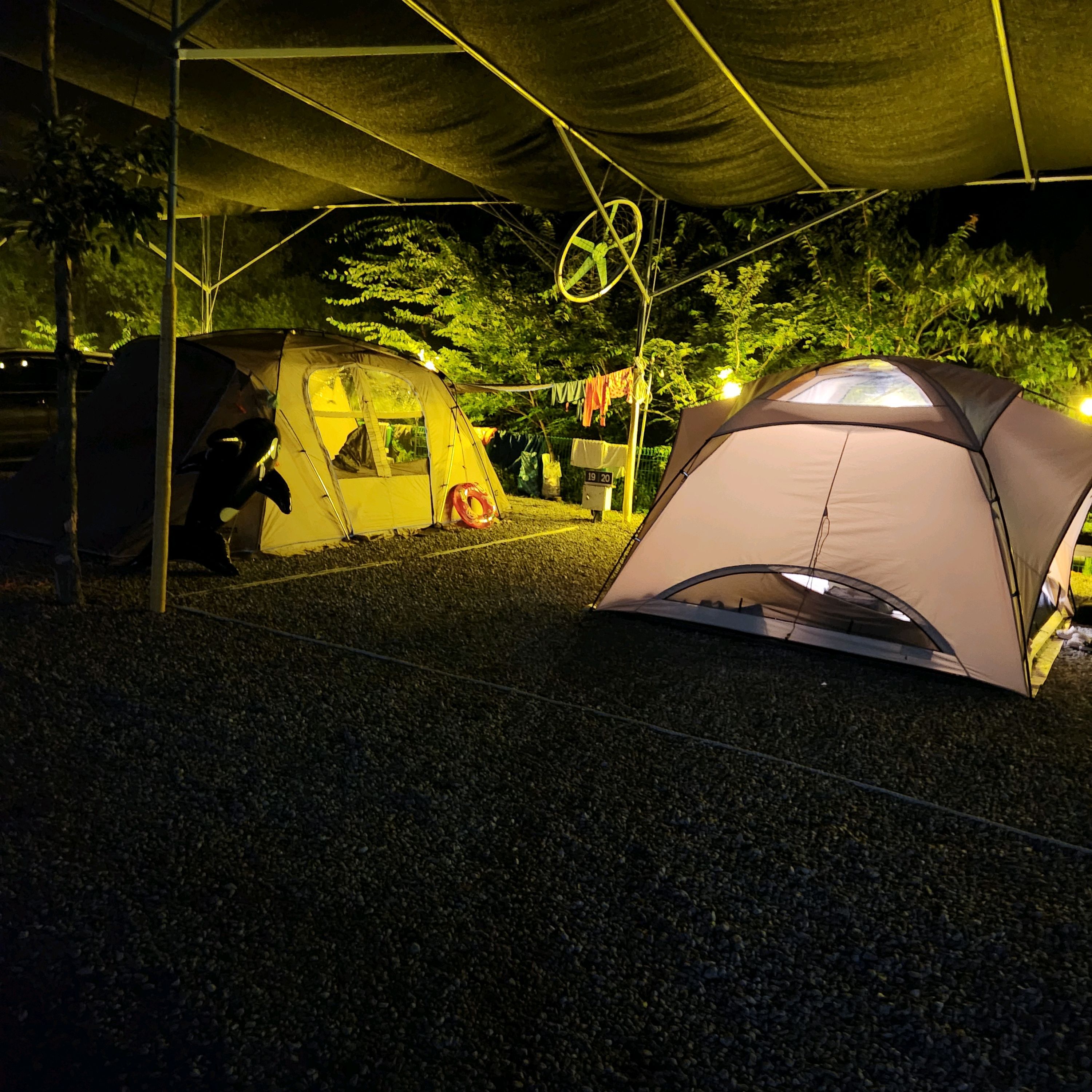 일자로 쭈욱있어서 프라이버시가 없겠다 싶었는데 워낙 사이트가 넓어서 차도 옆에 둘수있고, 위에 차양막있어서 타프없는 저희에게는 더할나위 없이 좋았어요👍👍👍