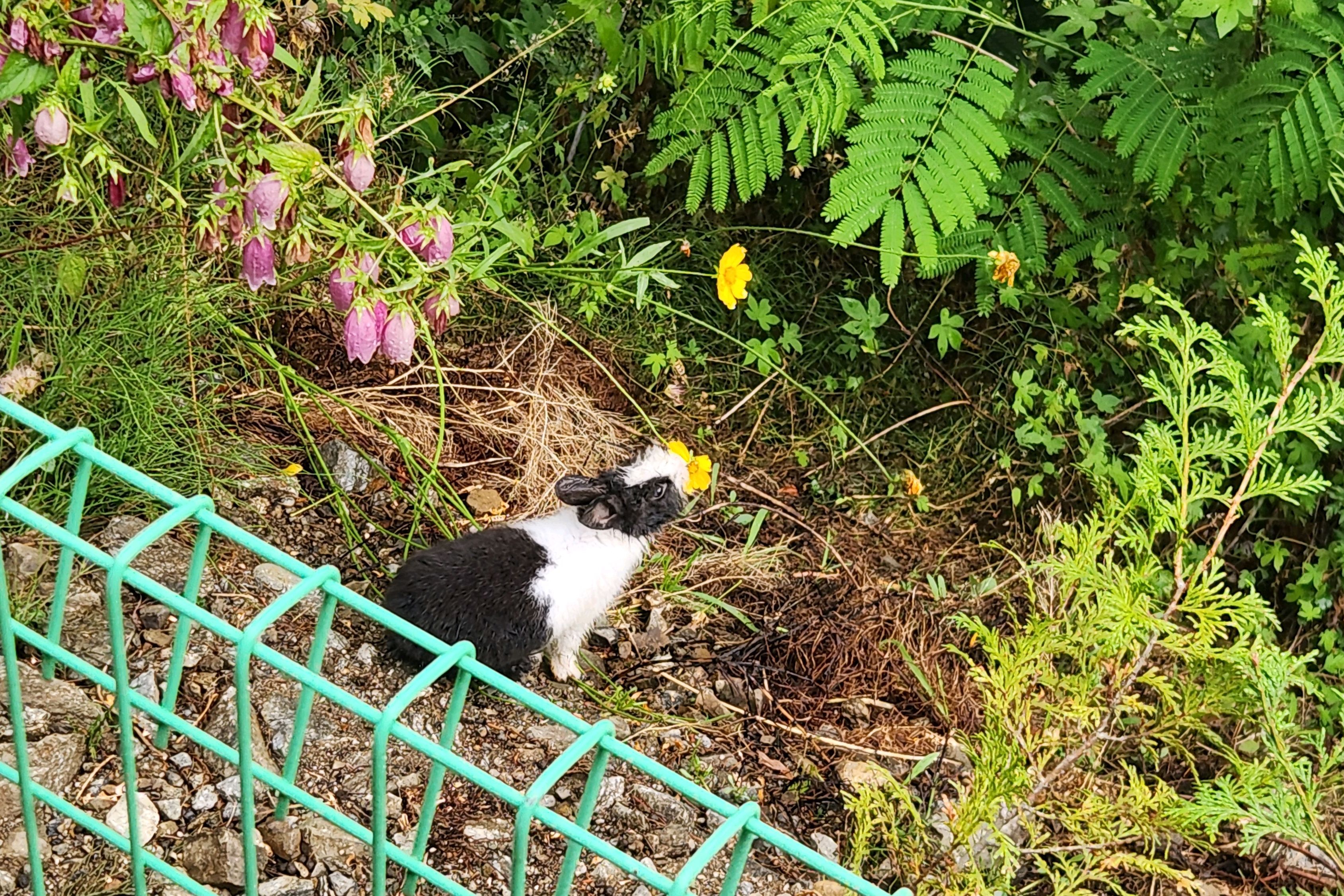 사이트 울타리밖으로 작은 토끼들이 뛰어다닙니다. 귀여워요~