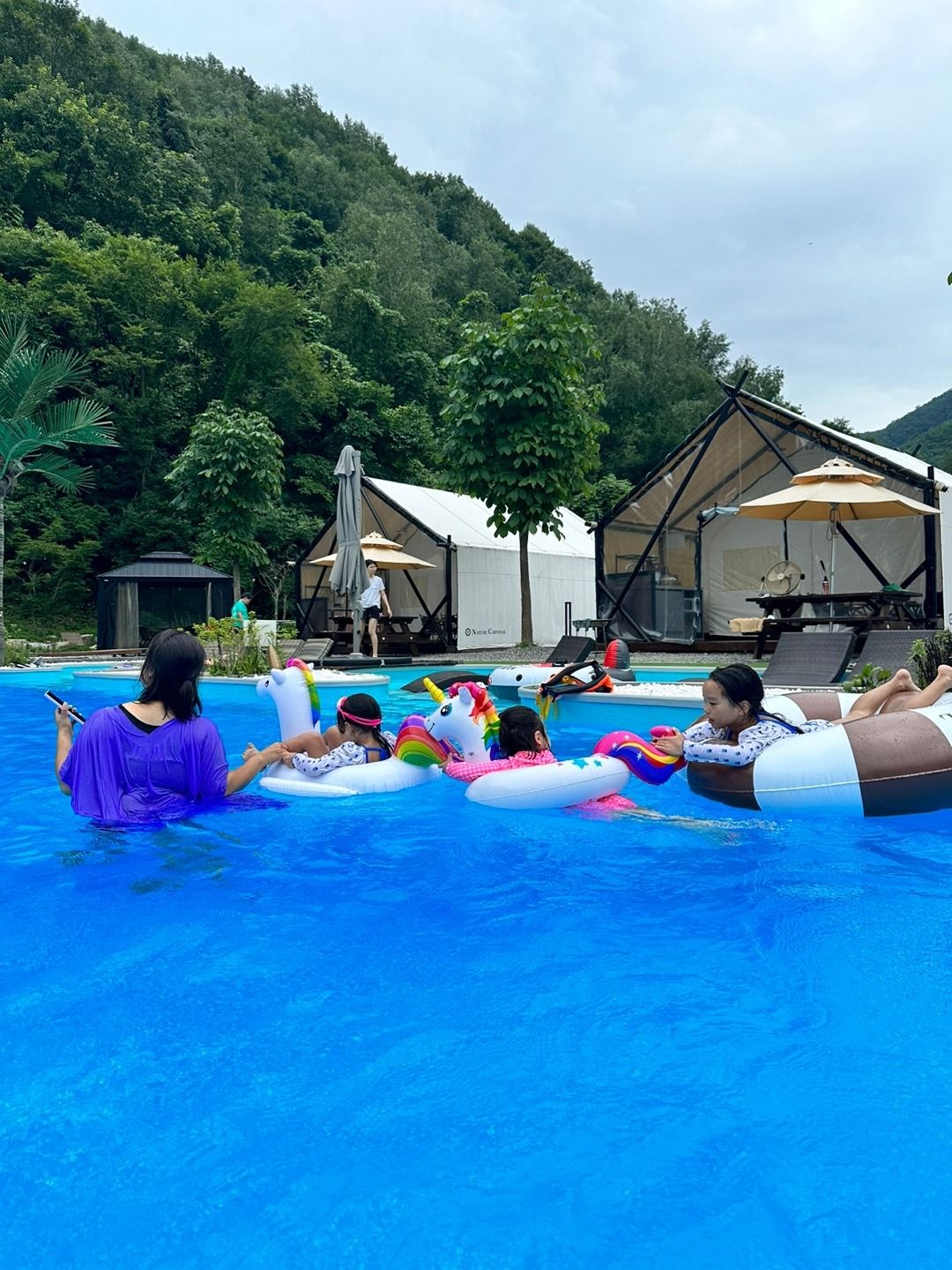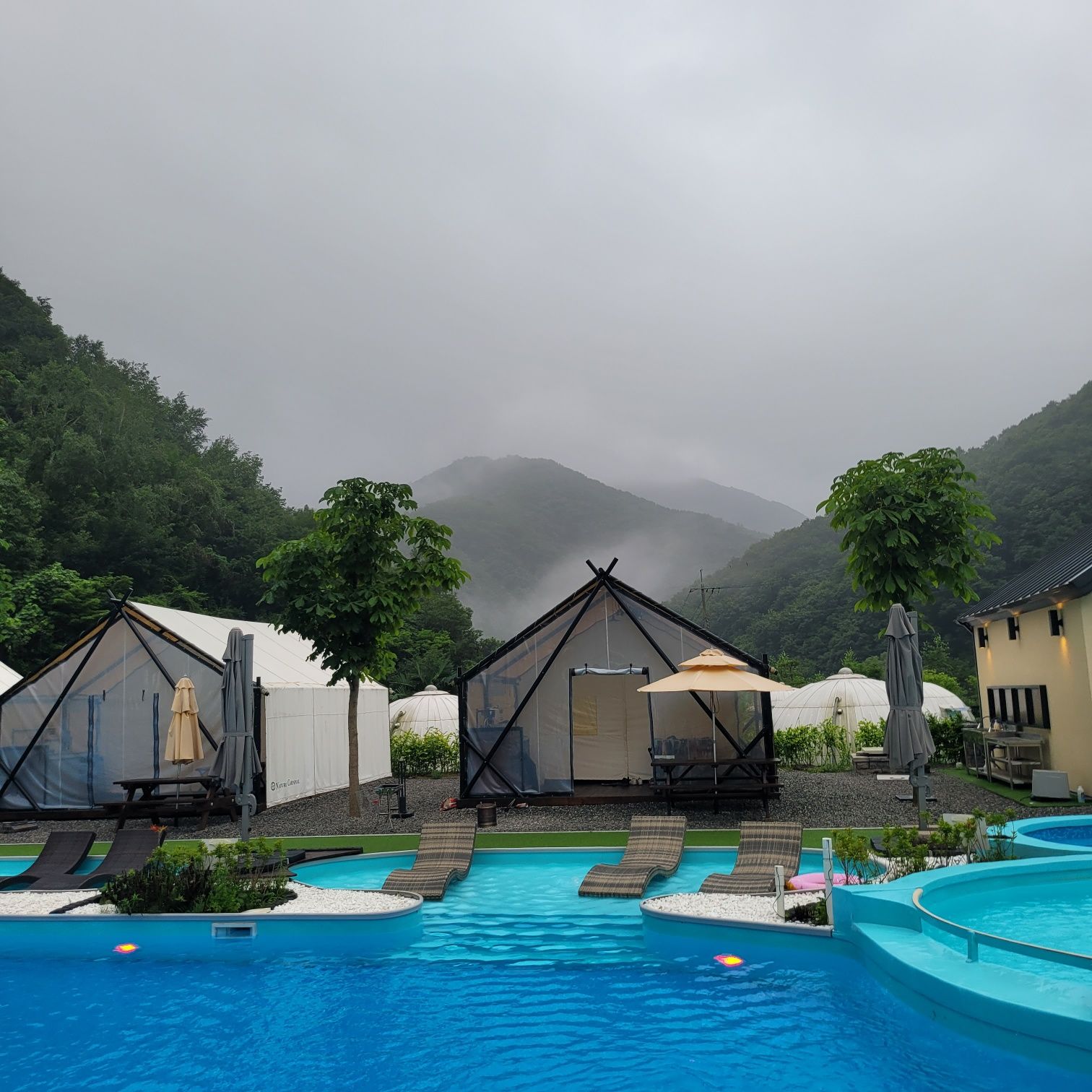 우연히 인스타에서 보고 가게 됐는데 진짜 너무너무 깨끗하고 좋았습니다~ 시간이 너무 금방 지나가는게 아쉬웠어요~ 저는 2동에 묵었는데 화장실이 공용인게 다른분들은 괜찮다고 하셨지만 확실히 불편하긴 합니다ㅠㅠ 그래도 정말 정말 깨끗해요~ 글램핑을 거부 하던 남편도 야외가 이렇게 깨끗하고 벌레도 거의 없고 진짜 대단하다며 너무 좋아했습니다! 아기도 수영장에서 너무 좋아했고 온수 풀이 있어서 춥고 힘들어 하면 온수풀에서 몸 담그며 쉴 수 있고, 물관리 너무 잘되고 있고 사장님 사모님 진짜 친절 하시고~ 너무너무 자주 가고 싶어요♡ 싱크대에 온수도 빵빵합니다~~