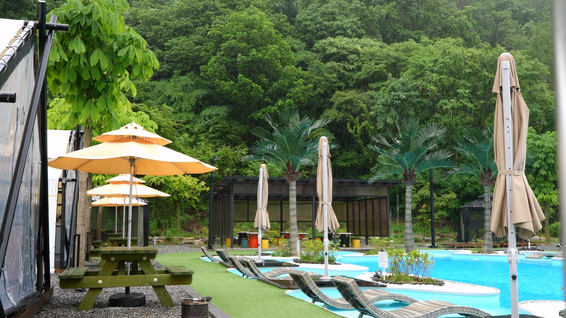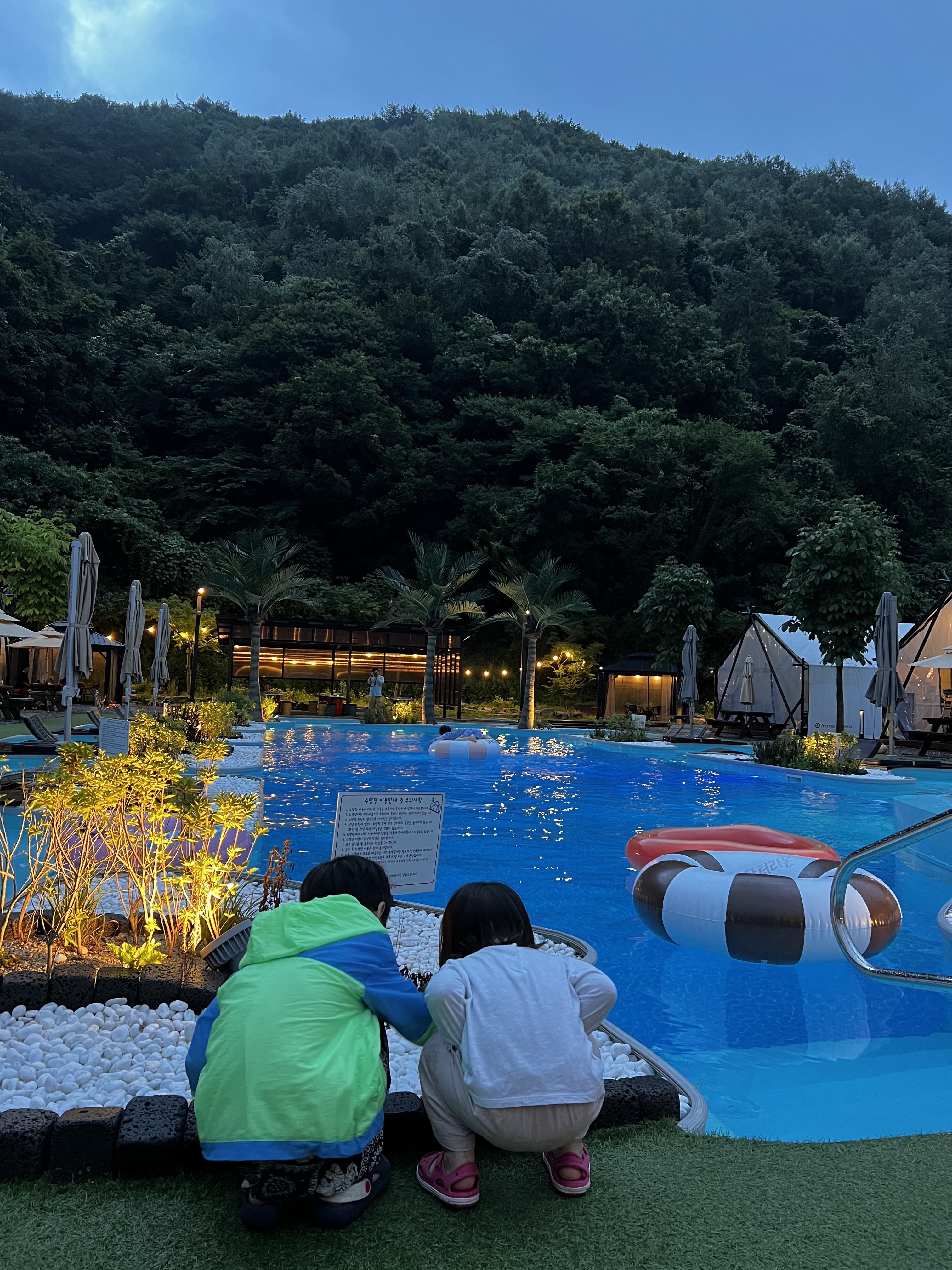 산속에 있어 벌레는 어쩔 수 없지만 계속 건져내고 계셔서 안심하고 놀 수 있고 물도 정말 깨끗해요!