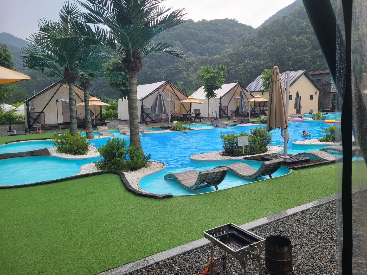 우연히 검색해서 찾은건지 아님 인스타에서 본 건지.. 2달전에 미리 예약이 되어서 8월 극성수기에 다녀왔습니다. 결론은 저희 4인 가족 즐겁게 잘 놀다왔네요. 일단 참 예쁘게 잘 지어놨습니다. 야자수랑 중앙에 수영장이 근사합니다. 애들이랑 수영하기 딱이죠. 밤에는 더 근사합니다. 그리고, 제일중요한건데 숙소가 깨끗합니다. 이불침구류니 방 상태부터 식기류등등 참 깨끗하게 해놓으셨더군요. 1년정도밖에 안돼서 그럴수 있다고 할 수도 있지만 사장님 마인드가 확실하신게 느껴집니다. 벌이 자꾸 들어와서 애먹었다니까 바로 여자사장님이 잡아주신것도 기억에 남네요. 사실 화장실이 내부에 있는 텐트가 아니어서 걱정했는데 공동화장실 샤워실 모두 매우깨끗했습니다. 이 정도는 최상급이라 생각듭니다. 당연히 재방문하고 싶습니다.^^