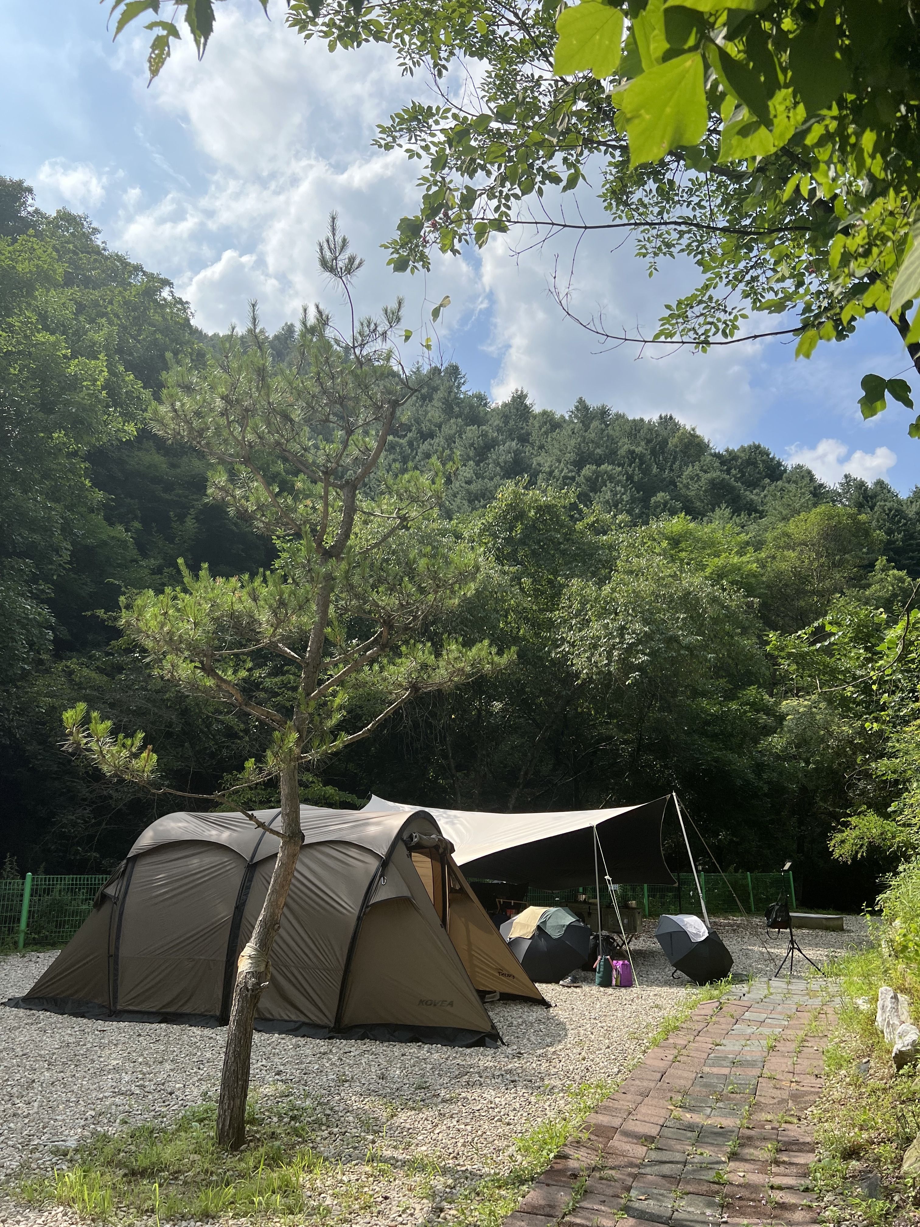 남편 생일을 맞이해서 엄마와 함께 첫 캠핑을 즐겼어요! 물소리 새소리도 참 좋았고~ 조용하게 쉬기에도 좋았어요! 첫 캠핑에 비가와서 조금 어려움이 있었지만 사장님께서 친절하게 도와주셨답니다? 개별화장실이라 편하구요 깨끗하고 온수도 잘 나왔어요! 대만족입니다!
