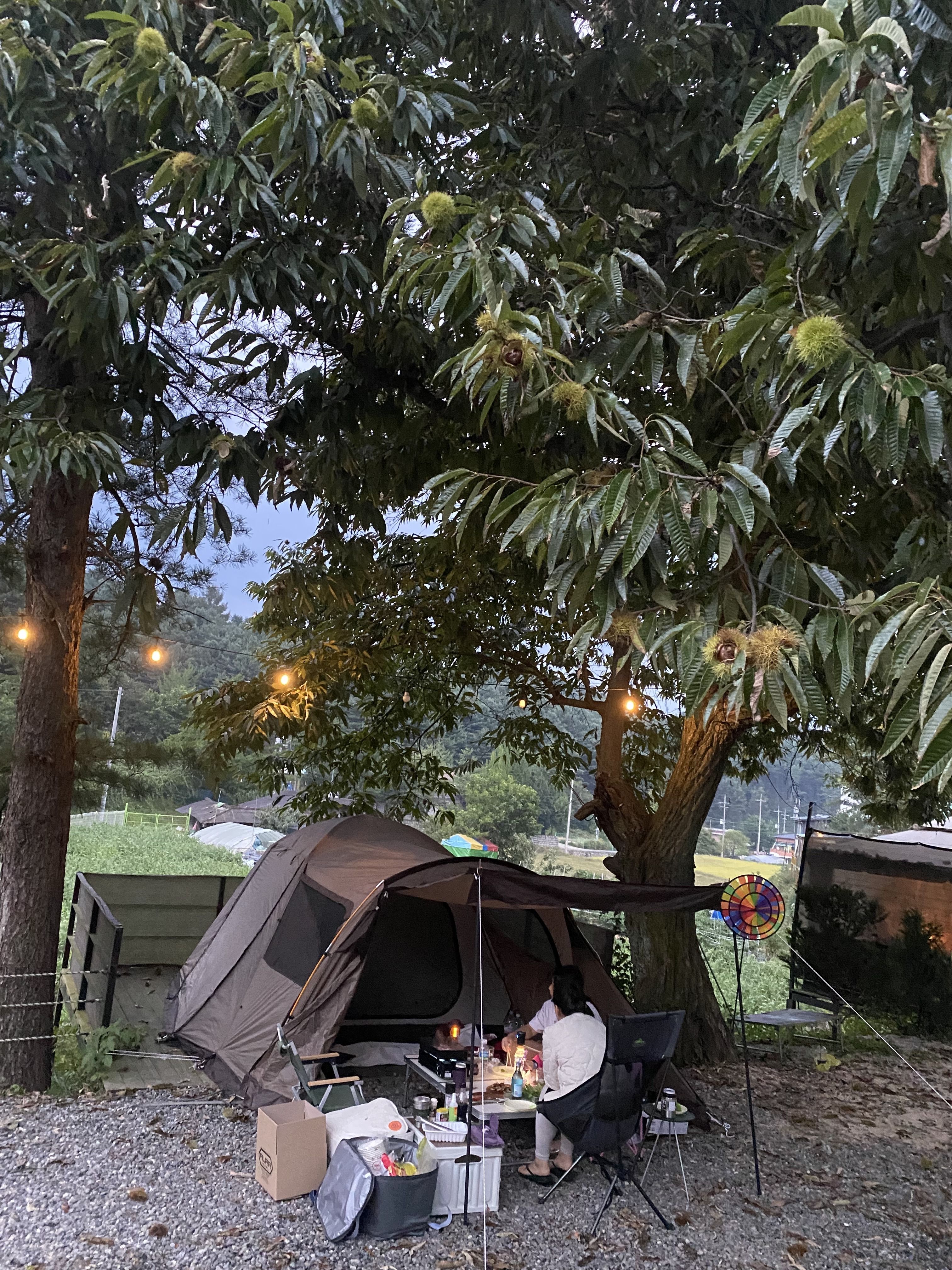 사이트 간격도 아주 넓고 특히 밤나무 아래 사이트는 밤새 밤떨어지는 소리에 깜짝 놀랐지만