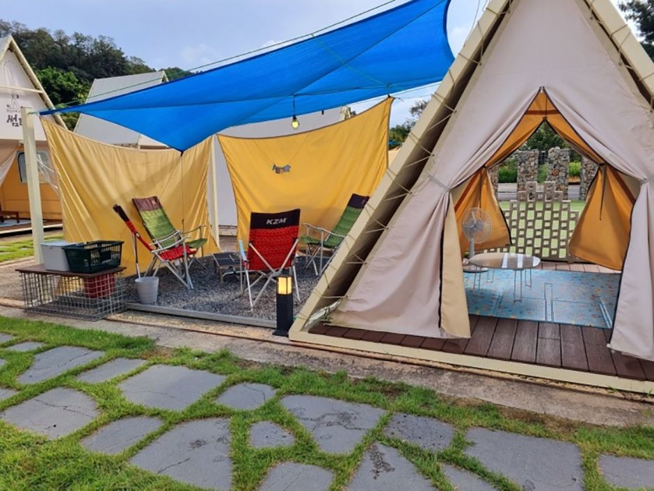 구화산BBQ는 경북 김천시 교동에 자리 잡았다. 김천시청을 기점으로 4km가량 떨어졌다. 자동차를 타고 부거리길과 구읍길을 번갈아 달리면 닿는다. 도착까지 걸리는 시간은 10분 안팎이다. 도심과 가까운 숲속에 위치한 캠핑 바비큐장이다. 이곳에는 글램핑 형태의 텐트, 테이블, 캠핑의자, 취사도구 등이 갖춰진 15면의 사이트가 마련돼 있다. 매점에서 육류 등 먹을거리를 구입해 직접 구워먹으면 된다. 수영장 등의 부대시설도 완비돼 있어 여름철 물놀이를 즐기기 좋다. 주변에는 직지사가 있어 연계 여행이 손쉽다.