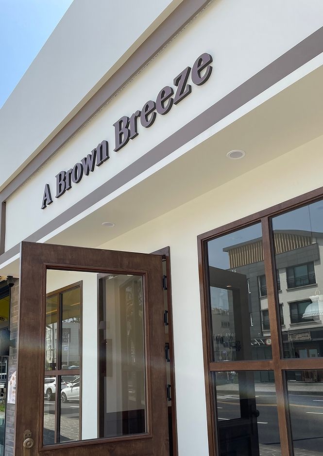 어브라운브리즈는 제주 탐라중학교 근처에 있다. 제주시민들 사이에서 베라체 카페로 통하며 크림색과 우드톤이 어우러진 깔끔한 분위기의 도민 맛집이다. 크림 커피와 매장에서 직접 구운 치즈케이크, 르뱅쿠키 등이 유명한 디저트 카페로 인기 메뉴는 얼그레이 바스크 치즈케이크이며 직접 만드는 초콜릿 소스를 쓴다. 두툼한 클래식 프렌치토스트는 브런치로 먹기 좋으며 홀케이크와 쿠키 단체 주문도 받고 있다. 주변 여행지로 제주민속자연사박물관 등이 있다.