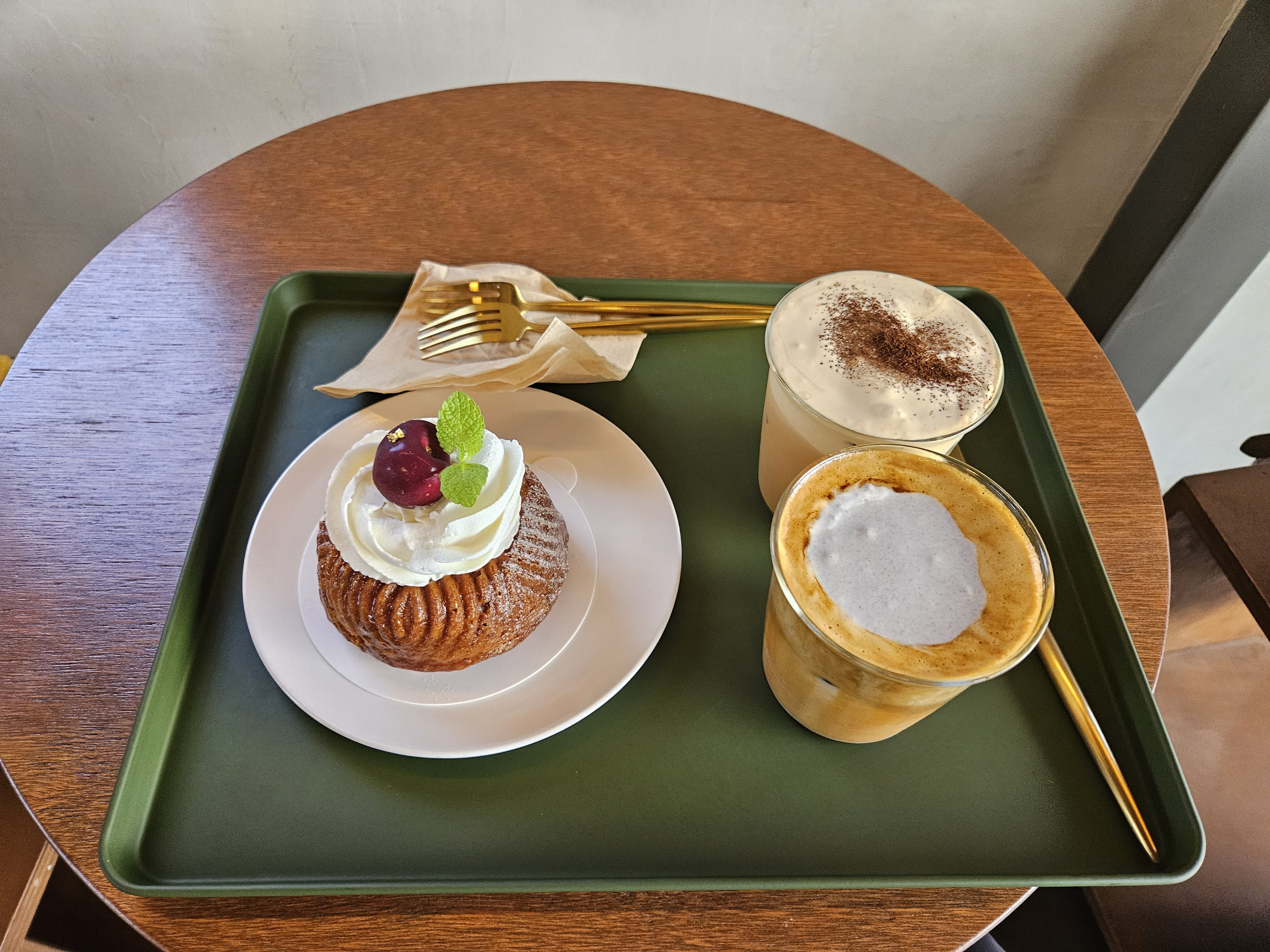 남편 고향 철원에 서울에서부터 놀러왔다가 전부터 가보고 싶었던 와수리커피에요. 곰신라떼.. 이거 대체 뭐죠? 너무 맛있어서 진짜 깜짝 놀랐어요. 제가 더현대 근처에서 근무하는데 더현대에 있는 유명한 크림라떼보다 훨씬 맛있고 강릉 툇마루도 능가하는 흑임자 라떼였어요.. 완전 감동!! 디저트도 직접 만드신건데 무화과 파운드가 아주 쫀쫀하니 너무 맛있었습니다. 카페 분위기도 말해뭐해 넘 좋네요 정말 철원에 이런 엄청난 커피가 있다니 서울사람 오늘 깜짝 놀랐답니다