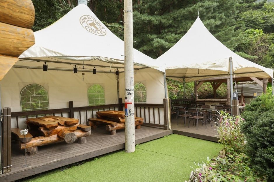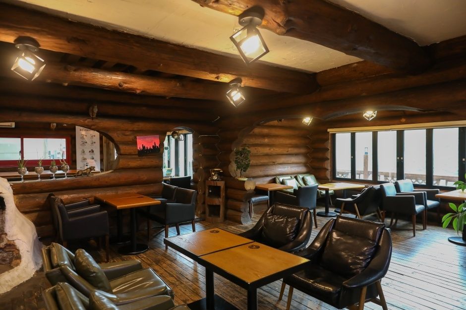 전국 유일 통나무 컨셉 탐앤탐스 매장입니다. 데이트하기 좋은 아기자기한 인테리어, 반려견 동반 가능한 탐앤탐스 영월점입니다
