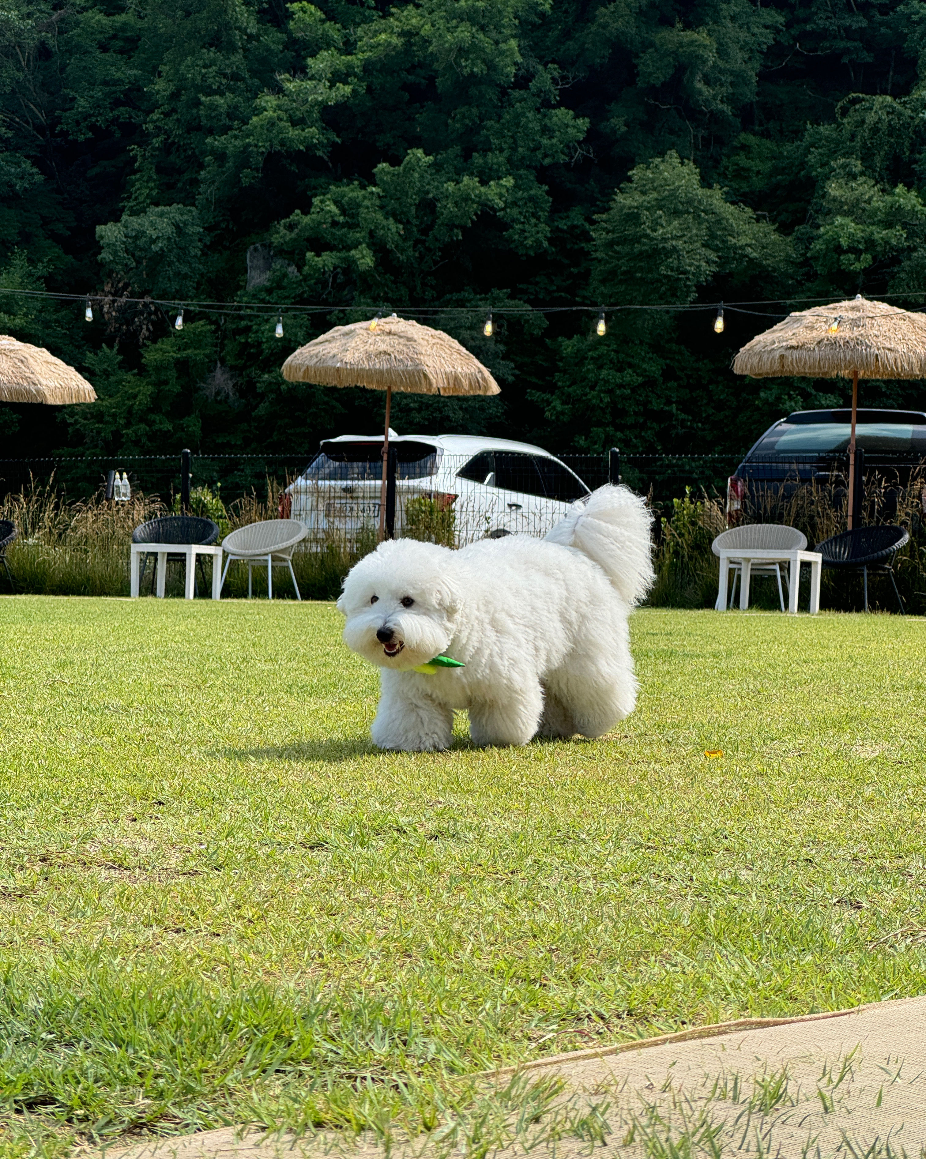 항상 깔끔하고 잔디에 배변이 5분이상 방치된 모습을 본 적 없어요. 테이블과 의자도 관리가 잘 되어있고, 그냥 보호자를 배려한 깔끔한 환경과 강아지를 배려한 관리잘된 잔디까지