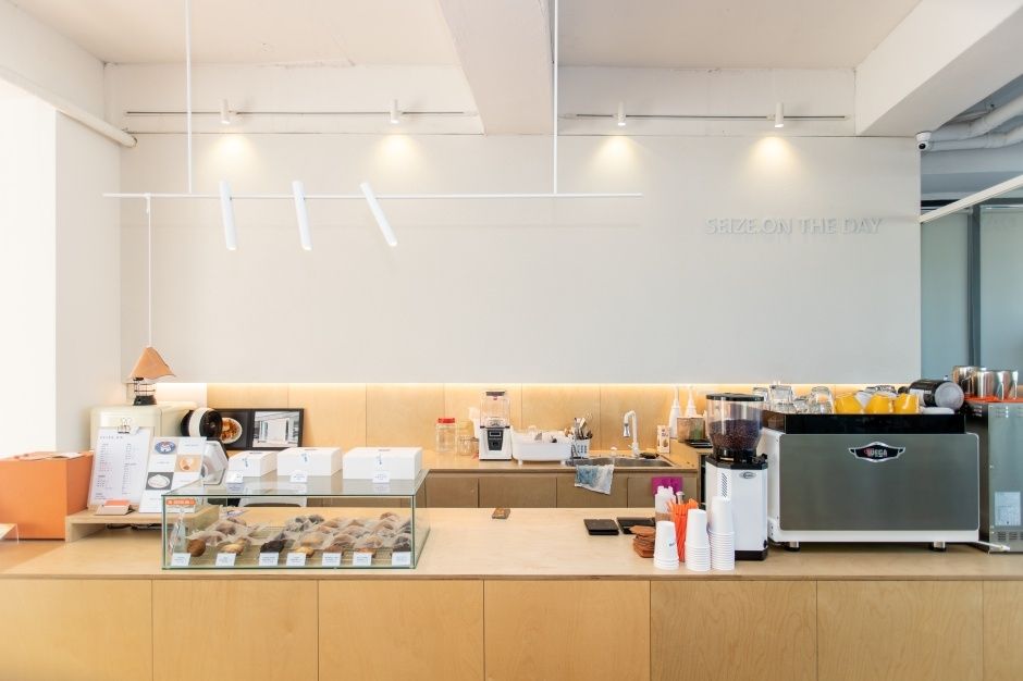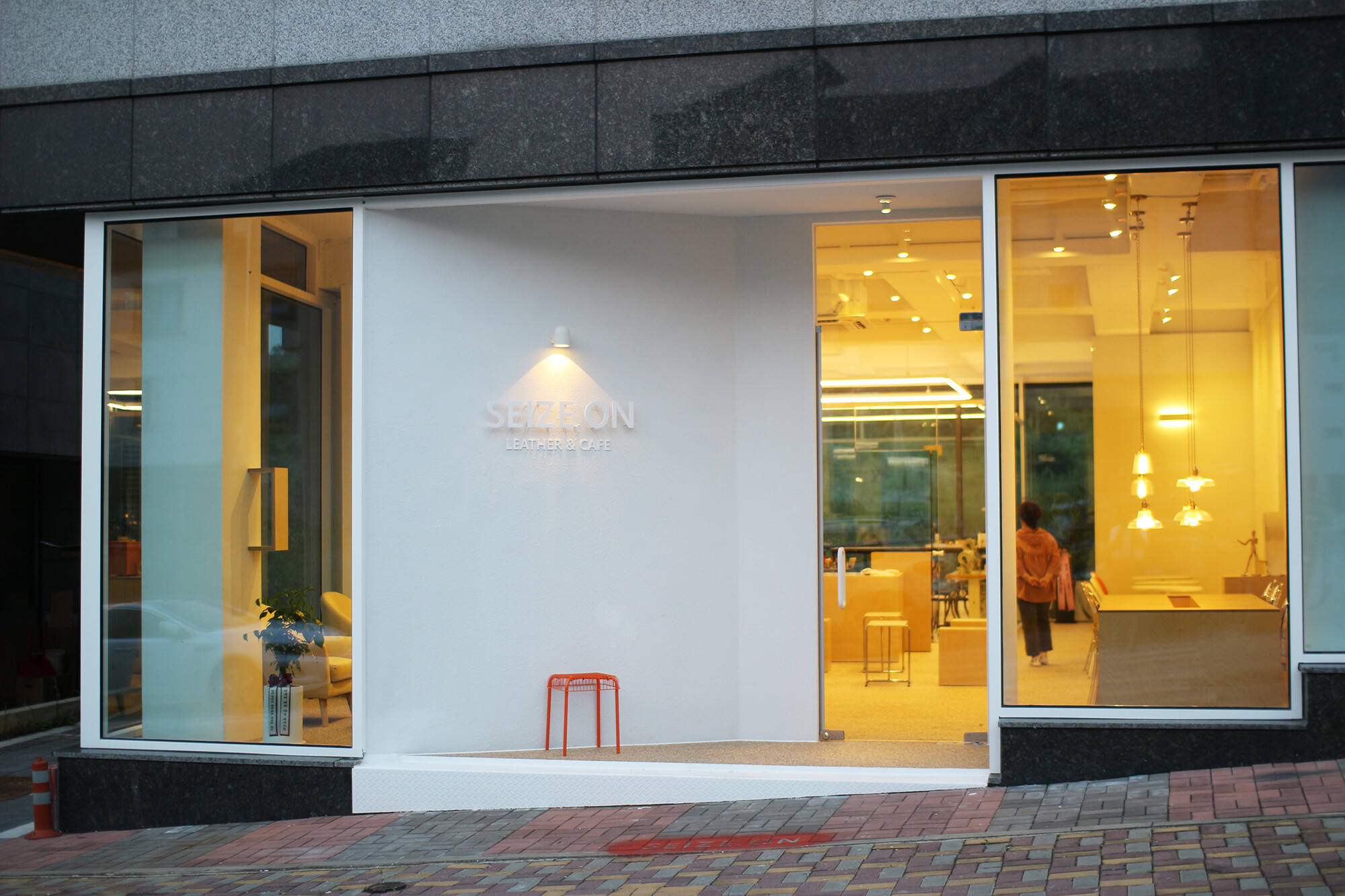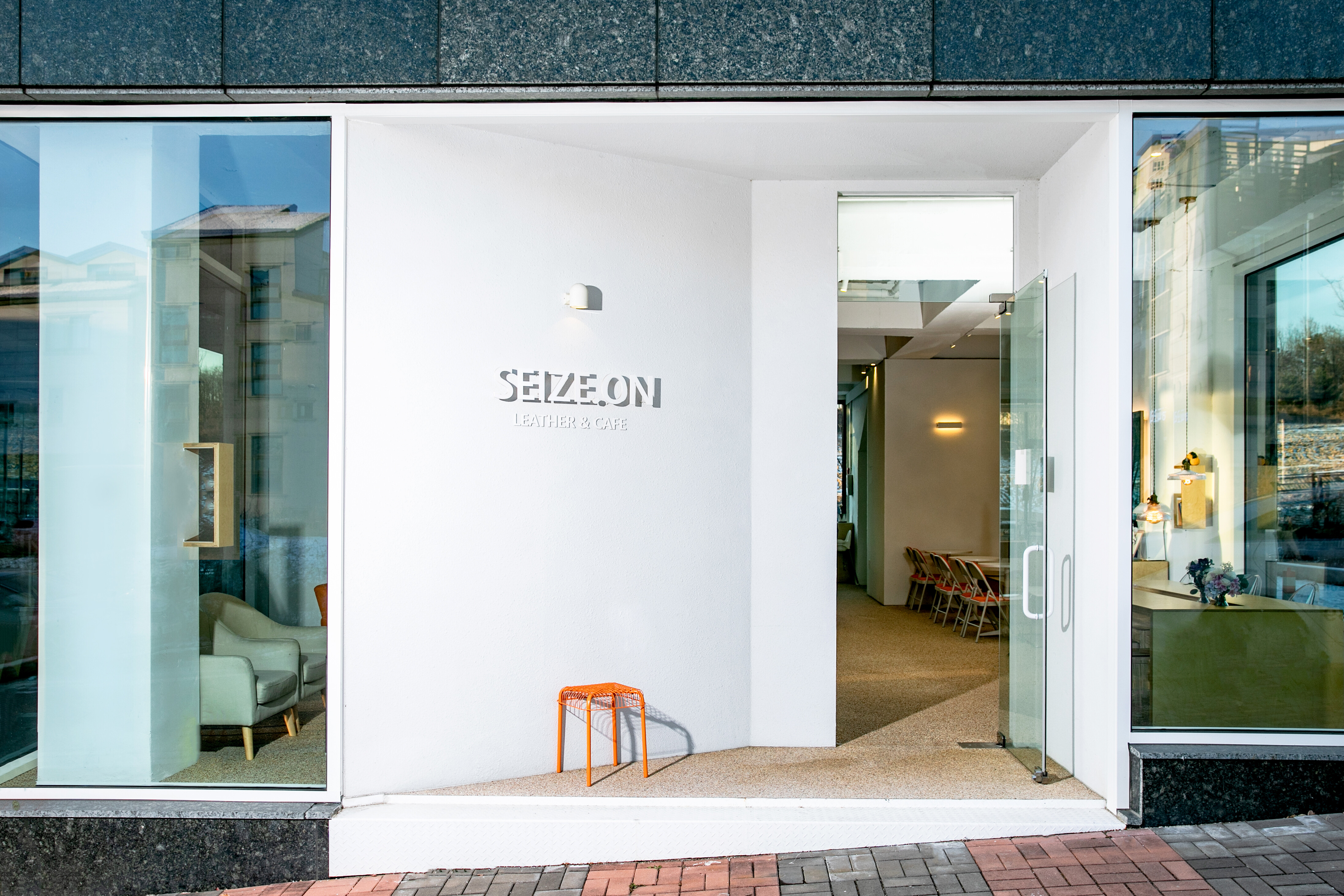 시즈온은 가죽 공방 카페이다. 실내는 화이트톤과 우드톤의 조화로 따뜻한 느낌을 주고, 오렌지색으로 포인트를 주어 감각적인 인테리어가 돋보인다. 카페와 가죽공예를 함께하는 공간인 만큼 카페 한편에 가죽공예를 할 수 있는 공간이 마련되어 있으며, 원데이 클래스와 주문 제작, 정규반 수강을 진행하고 있다.