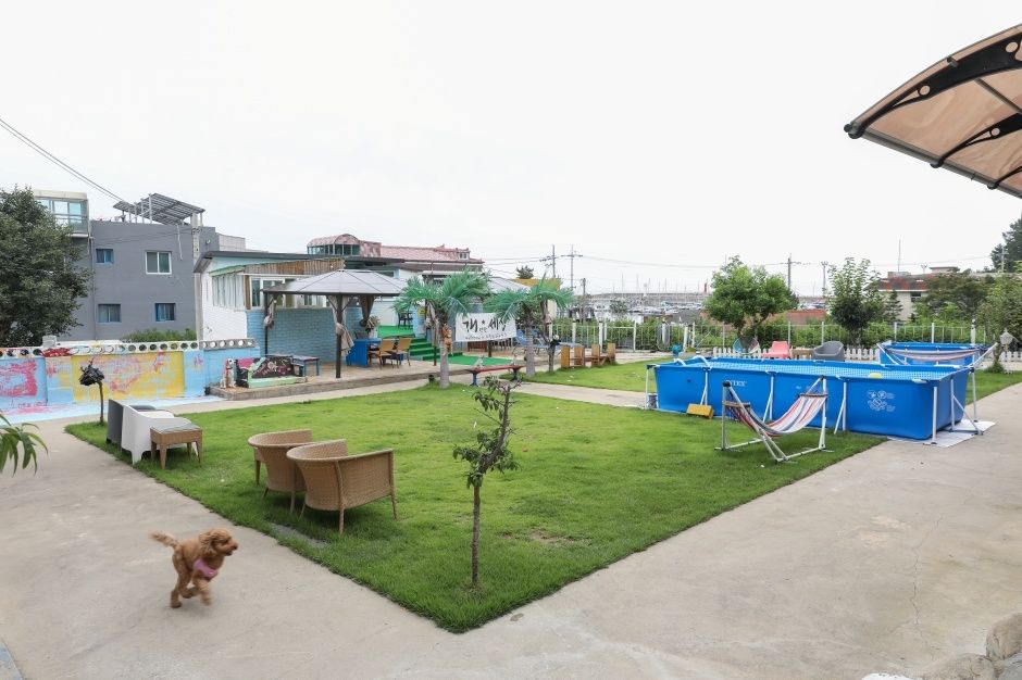 마당에 잔디와 수영장이 있다고 해서 예약한 숙소인데 수영장 물이 생각보다 관리가 안 되어 있어서 수영은 못 했어요ㅠ 그리고 방 바닥에 모래가 꽤 있더라고요 멀리 보이는 바다뷰는 좋았습니다