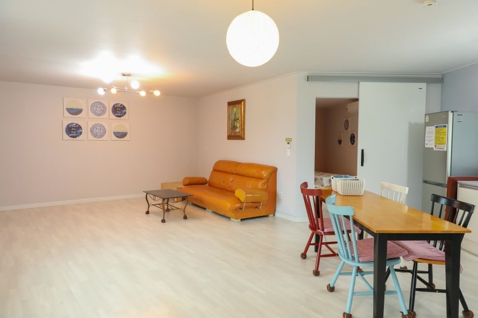 4인기준(추가 인원 비용 발생) 방을 5명이서 이용했습니다 방도 넓고 단독으로 사용해서 너무 좋았어요 침구류 깨끗하고 화장싱 깔끔하니 괜찮아요. 따듯한 물 잘 나오고 객실 바로 앞에 주차할 수 있어서 좋았습니다