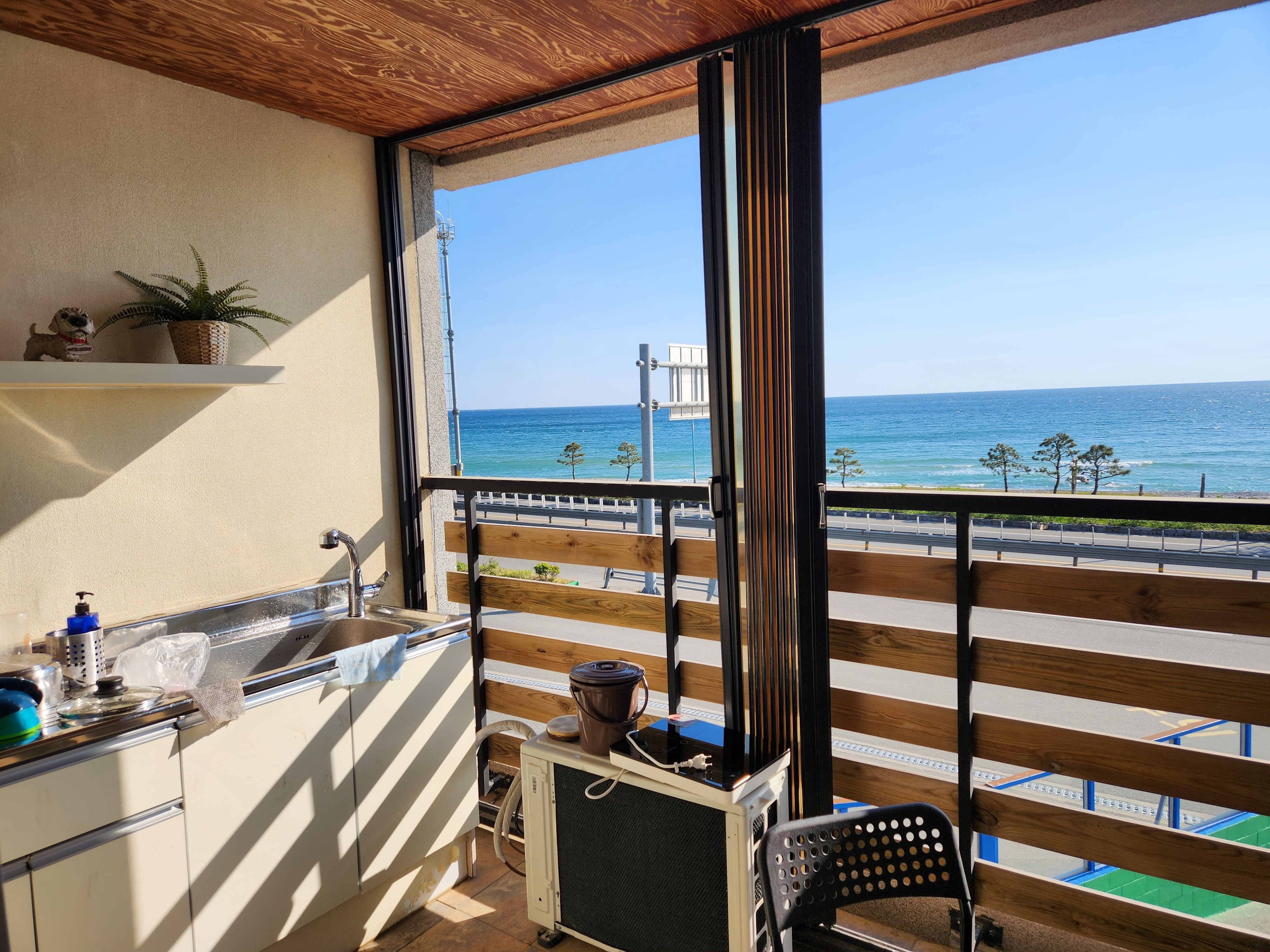 뷰 맛집이네요. 반려동물 데리고 뷰 좋은데 찾기 힘든데 좋았습니다. 이중창이 잘 되어있어서 방음 잘 되구요. 깔끔하고 베란다에서 바다 보면서 먹을수 있어서 좋았어요. 바로 앞 해변에서 놀고 속초시장 가까워서 사다 먹기도 좋아요