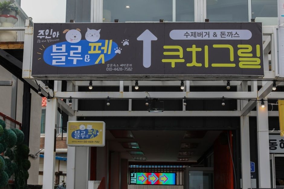 블루&펫은 강릉 경포대 옆 강문해변에 위치하고 있다. 강릉 반려견 동반펜션 블루앤펫은 반려동물과 함께할 수 있는 A동과 일반 B동을 같이 운영하고 있다. 호텔같이 화려하고 모든 걸 갖추지는 못했지만 눈길 끌기 위한 겉치장 보다는 넓은 강문해변을 마당 삼아 힘들고 치열했던 일상에서 벗어나 우리의 반려동물과 편안한 잠자리와 힐링 하는 하루를 즐기시길 바란다.