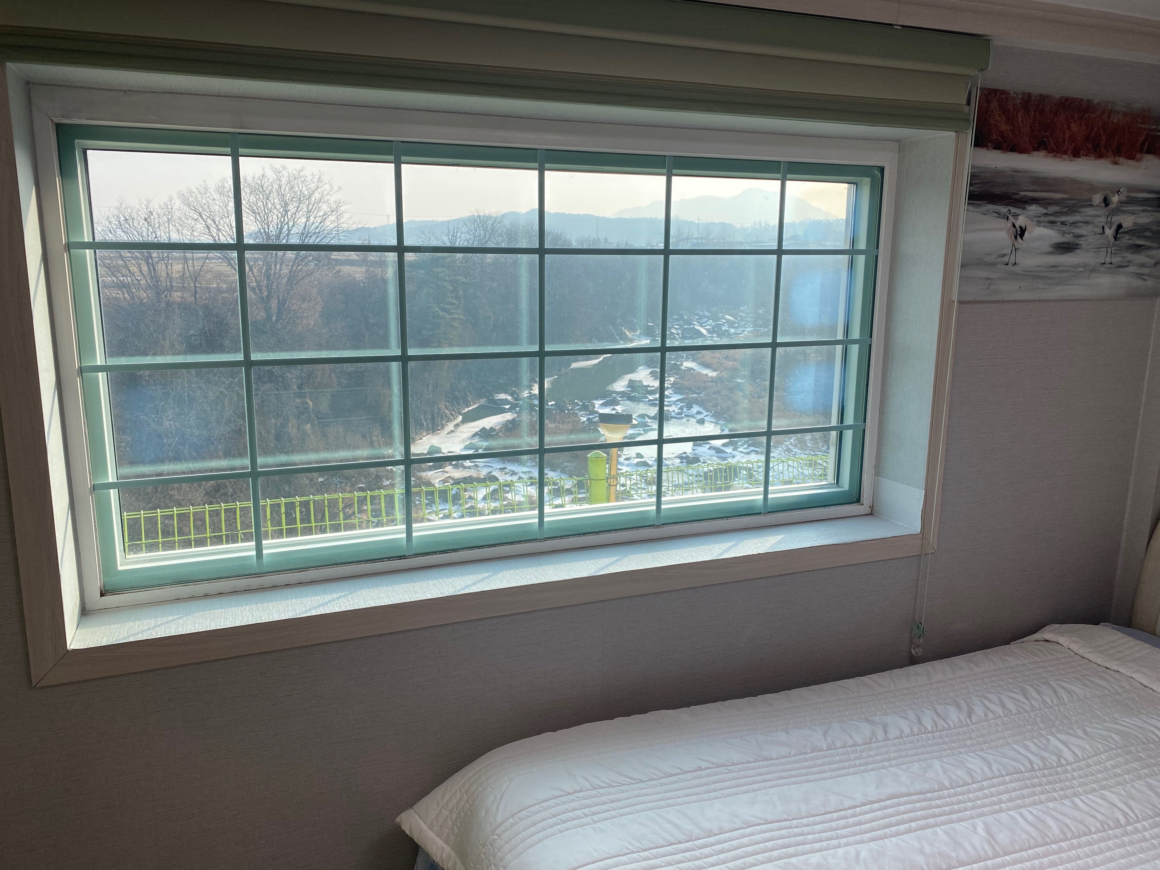 - 방에 테라스가 있는데 한탄강이 보이는 뷰라 너무 멋있었어요! 비가 와서 테라스를 이용하진 못했지만 다음에 다시 와서 커피 한잔 하면서 한탄강 보고 싶더라고요