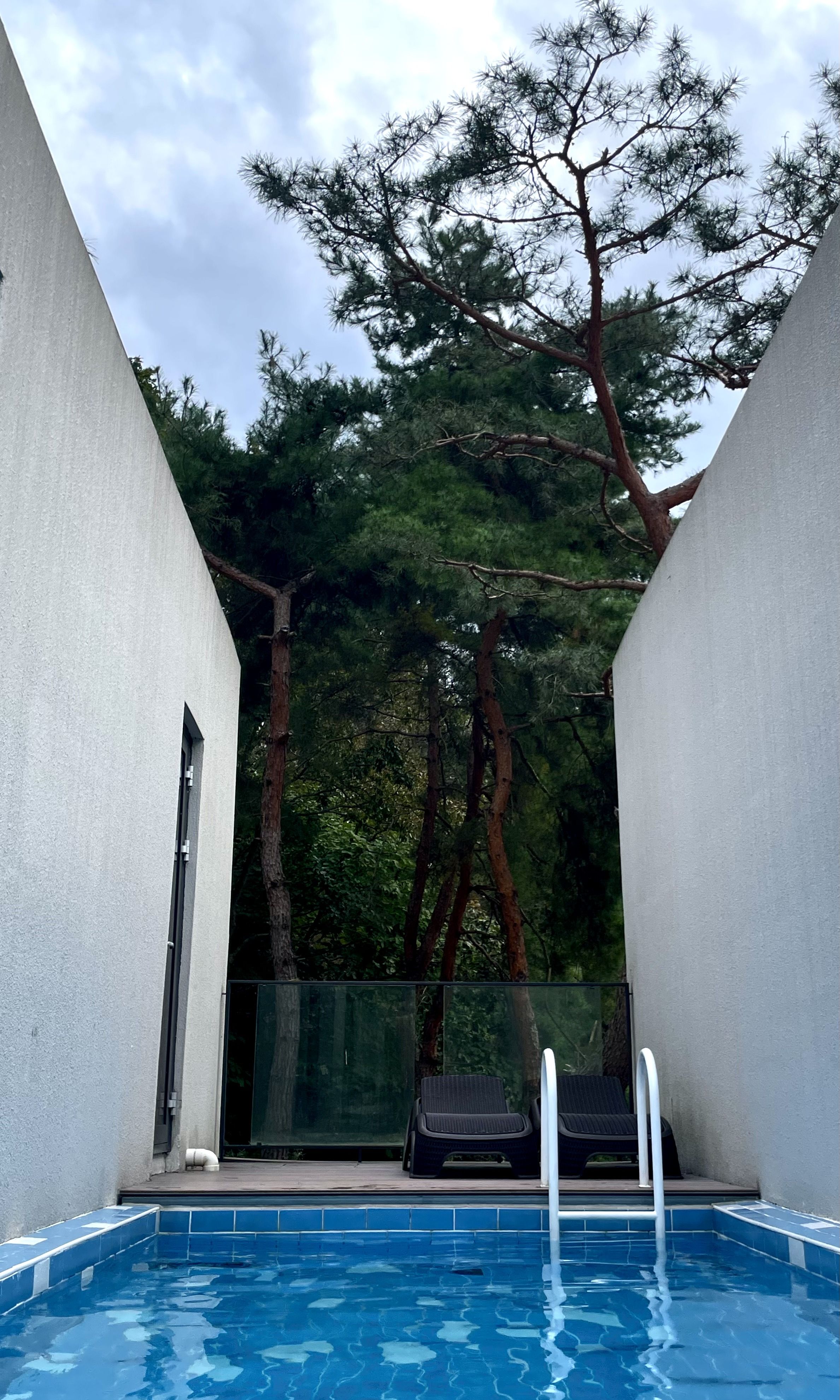 인스타에서 보고 '프랭크 로이드 라이트'의 낙수장처럼 유니크하고 이형호 건축예술가분이 만든 곳이라 펜션도 방문함^^ 자연과 어울어져 전나무숲향과 지하수로 채운 수영장이 아담하고 멋짐. 가족과 오붓하게 바베큐도 좋은 숯으로 맛나게 구워먹고 조용하게 힐링하고 왔음^^ 수영하고 원풀형욕조에서 따뜻한 물로 스파하니 피로가 풀림. 건축된 시기에 비해 잘 관리되어 있고 비데,정수기,공기청정기,넷플,깨끗한 이불과 수건,커텐,모기향등등~만족^^ 자연과 가까운 곳이라 수영장에 떨어진 자연물^^곤충.나뭇잎.모기.벌은 있지만 문을 잘 닫으면 괜찮고 캠핑느낌도 납니다~ 갠적으로 아쉬운건 화장실이 샤워실과 분리된거~직원분들도 확인하시겠지만, 호텔.리조트가 아니니 방문객이 기름진 접시는 뒷분들 배려해서 깨끗이 세척해주심 좋을듯요^^