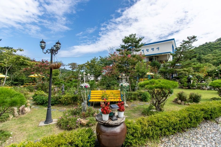 자연과 하나 되는 정원 가득 반려견동반펜션이다. 일천평이 넘는 드넓고 아름다운 정원에는 직접 가꾼 야생화와 나무가 펼쳐져 있다. 분수대와 그네가 어우러진 모습은 영화 같은 풍경을 자아낸다. 휴식과 낭만이 있는 정원 펜션에서 영화 같은 추억을 만들어 보시길 바란다.