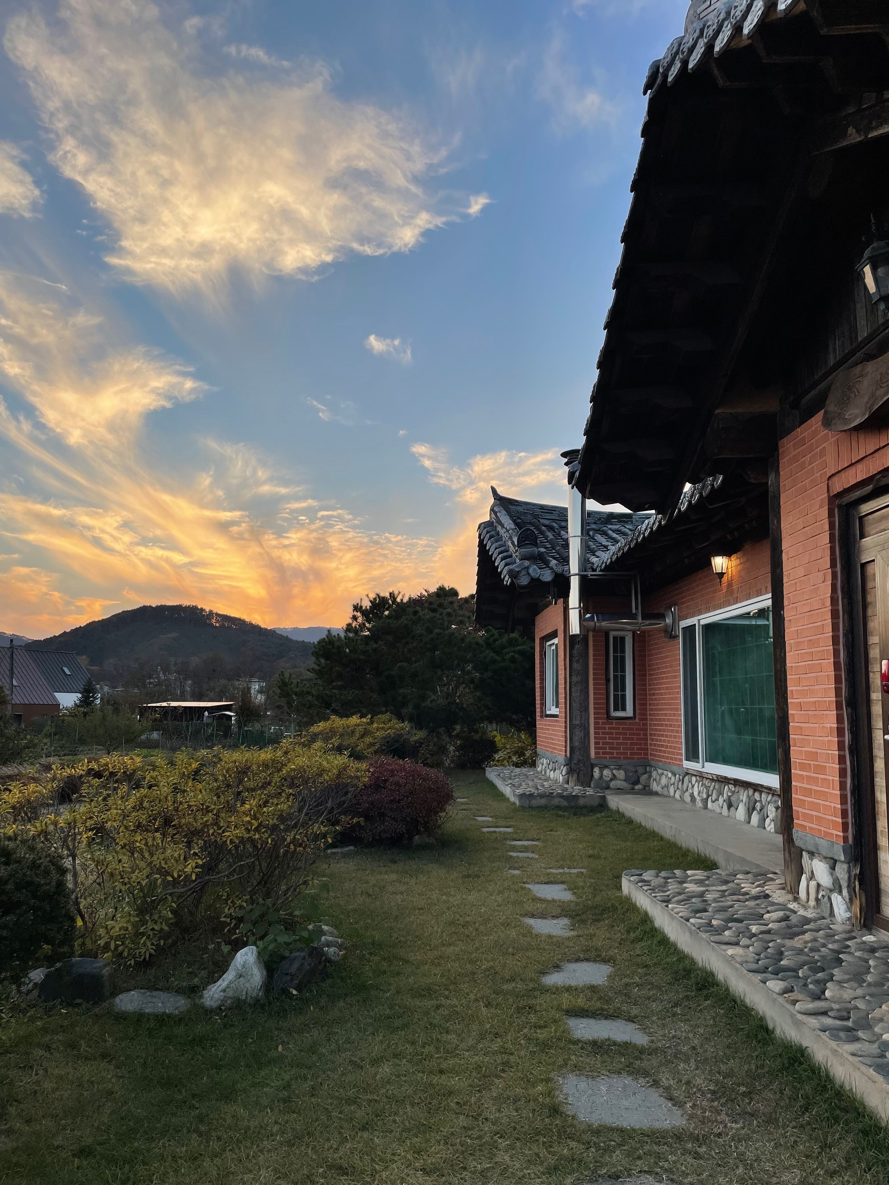 야외 테라스에서 노을을 바라보며 먹는 바베큐도 정말 기억에 남는 포인트 에요 ! 노을을 등지고 있지 않아서 뷰 감상도 너무 좋았구요 ! 전기파리채, 모기약, 등등 벌레퇴치약도 많이 구비해 두셔서 정말 필요하다고 느껴진 물건이 하나도 없었어요 ㅠㅠ 아무것도 챙겨가지 않아도 됩니다.. 정말 사소한것 까지 다 구비가 되어 있어요 ㅠㅠ 난방도 따숩고,, 심지어 침대에는 전기장판도 깔려 있어용 ㅠㅠ 단체라서 이불이 모자르면 어떡하나 했는데 아래위로 두겹씩 깔고 덮고 자도 남을 만큼 넉넉했습니다 ㅎㅎ 어머니 고향이 춘천이라 춘천으로 모였는데 재방문 의사 1000% 입이다 !!
