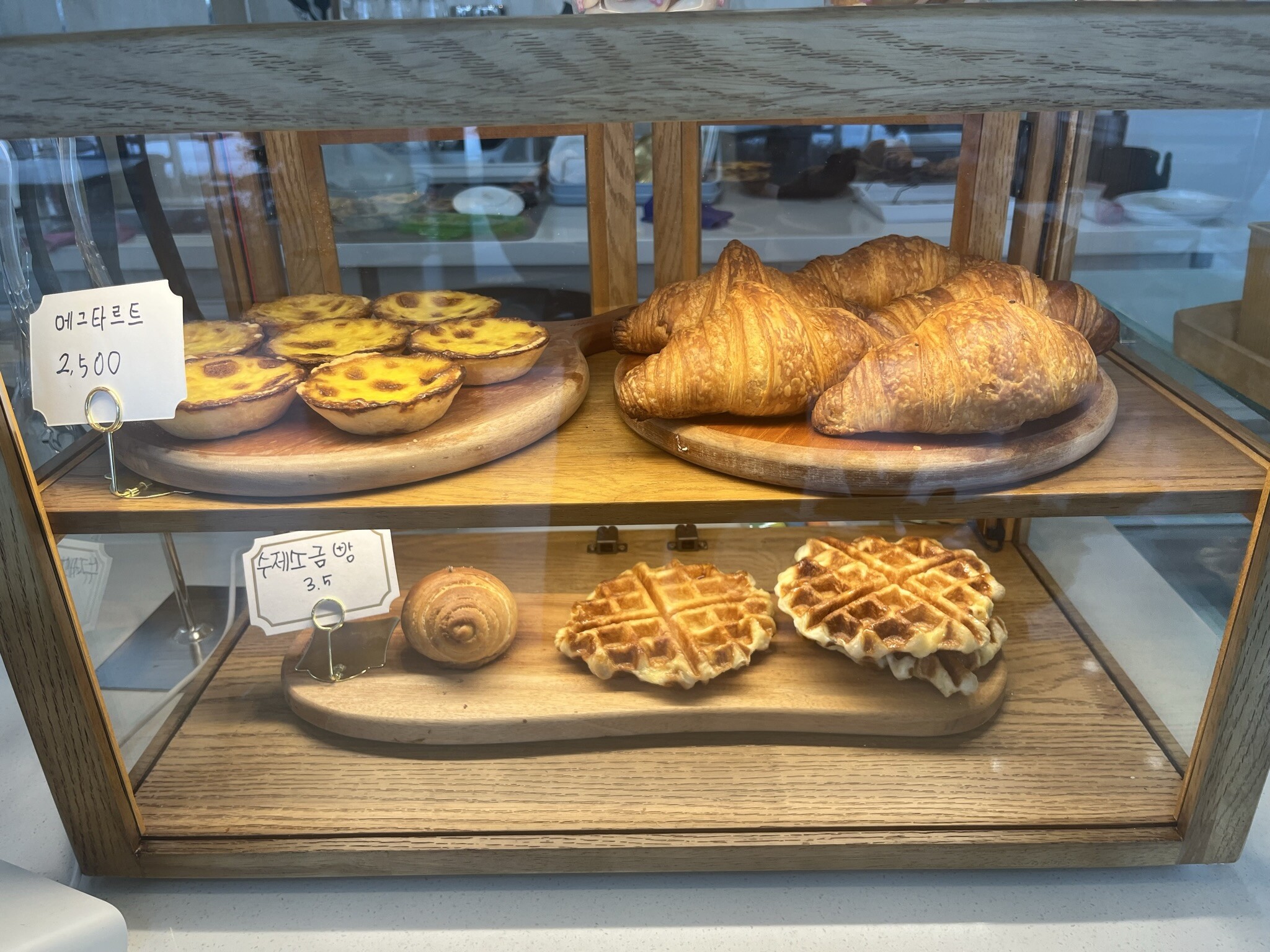 밭뷰가 초록초록하니 예뻐서 힐링이었고 신상카페라 굉장히 깔끔하고 쾌적합니다 주차도 편리하고 디저트도 종류 많아 아주 만족이에요 치즈빵+버터크림라떼 조합 추천드립니다 :)