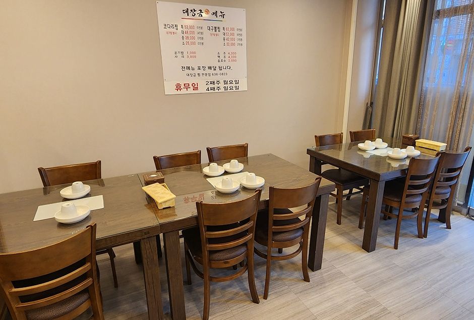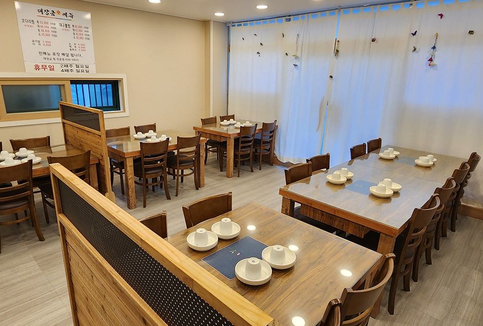 대장금찜한정식은 찜으로 유명한 거제도 맛집이다. 내부는 전통 한정식 느낌으로 깔끔하며 좌식 테이블로 이루어져 있다. 메인 메뉴인 코다리찜은 통으로 쪄서 나오는 코다리의 비주얼도 훌륭하며 양념도 밥과 함께 비벼 먹기 좋다. 양념은 매콤하면서 감칠맛 나는 깔끔한 맛이다. 부드럽고 촉촉한 코다리에 양념까지 잘 배 있어 맛이 좋다. 크게 맵지 않아 속이 부담스럽지 않다. 기본 반찬들은 보기만 해도 건강해지는 느낌이다. 거제 관광모노레일, 고현성 등이 인접해 있어 함께 둘러보기 좋다.