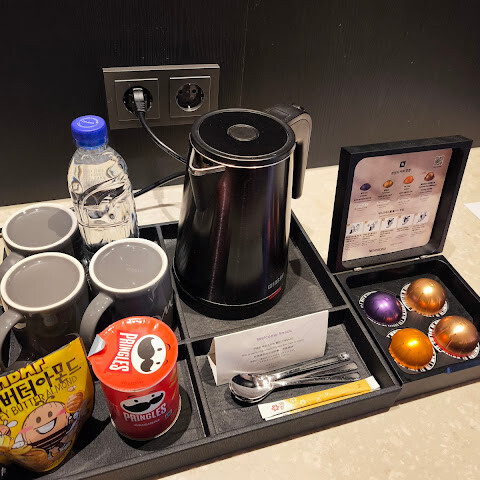 호텔에 들어서는 순간부터 직원들의 유창한 영어 실력과 로비의 따뜻하고 편안한 분위기에 깊은 인상을 받았습니다.<br><br>객실 크기도 딱 좋았고, 캡슐 커피, 쿠키, 맥주까지 갖춰져 있어서 정말 만족스러웠습니다.<br><br>무엇보다도 위치가 최고였습니다!