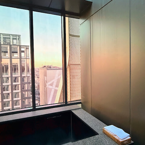 객실은 아늑하고 넓게 디자인되었으며, 작은 거실과 침실 공간이 분리되어 있습니다. 화장실과 샤워실이 분리되어 있는 점이 특히 좋았습니다! 👍🏻 가장 만족스러운 점은 넓은 노천탕입니다. 석양을 바라보며 노천탕에 몸을 담그는 것은 정말 최고의 경험입니다! 방음도 훌륭해서 번화가 근처에 있음에도 불구하고 밤에는 전혀 시끄럽지 않았습니다.