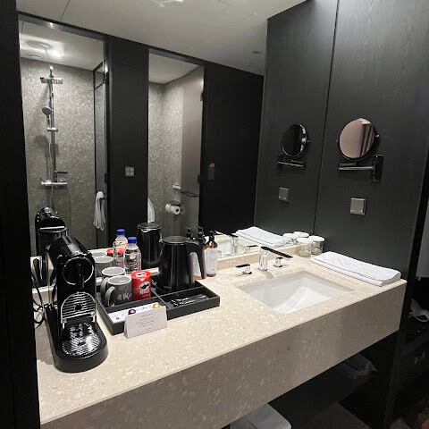 약혼자와 저는 한국에 처음 가는 여행으로 15박을 머큐어 홍대에서 묵었는데, 기대에 부응했습니다. 객실은 아주 좋았습니다(욕실 세면대 수도꼭지, 카드키 등에 약간의 사용감이 있긴 했지만요). 하지만 전반적으로 가격과 제공하는 서비스를 고려했을 때 훌륭한 호텔입니다. 샤워실은 온수와 수압이 훌륭했고, 변기와 샤워실이 분리되어 있으며 비데와 자동 물내림 기능도 있습니다. 지하에 세탁기와 건조기가 두 대 있어서 정말 편리했습니다. 5~6일치 옷만 챙겨서 짐을 더 많이 둘 수 있었거든요. 호텔 바로 건너편에는 정말 맛있는 설렁탕, CU 편의점, 약국이 있습니다. 2호선과 AREX 일반 열차 탑승구와도 매우 가깝습니다. 모든 직원들이 친절하고 한국어를 못하거나 한국어를 못하는 사람들을 위해 영어를 아주 잘합니다. 티안 미미는 객실 내에서 식사가 가능하지만, 저녁 식사는 대기 시간이 꽤 길다는 점을 감안해야 합니다. 무엇보다 로비에 카페가 있어서 비 오는 날에도 편하게 커피를 마실 수 있어서 좋았습니다. 덕분에 커피 마실 곳을 따로 찾을 필요가 없었죠. 다음에 홍대에 묵는다면 꼭 다시 방문할 거예요!