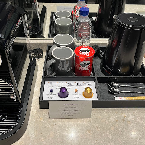 이 호텔에서의 숙박은 정말 즐거웠습니다. 일찍 체크인해서 객실 업그레이드를 받았습니다. 객실은 깨끗했고, 한국 호텔 기준으로 큰 캐리어를 넣어도 충분히 넓었습니다. 침대는 매우 편안했고, 침대 옆 탁자도 편리하게 이용할 수 있었습니다. 도착 시 커피, 웰컴 스낵, 음료가 제공되었습니다.