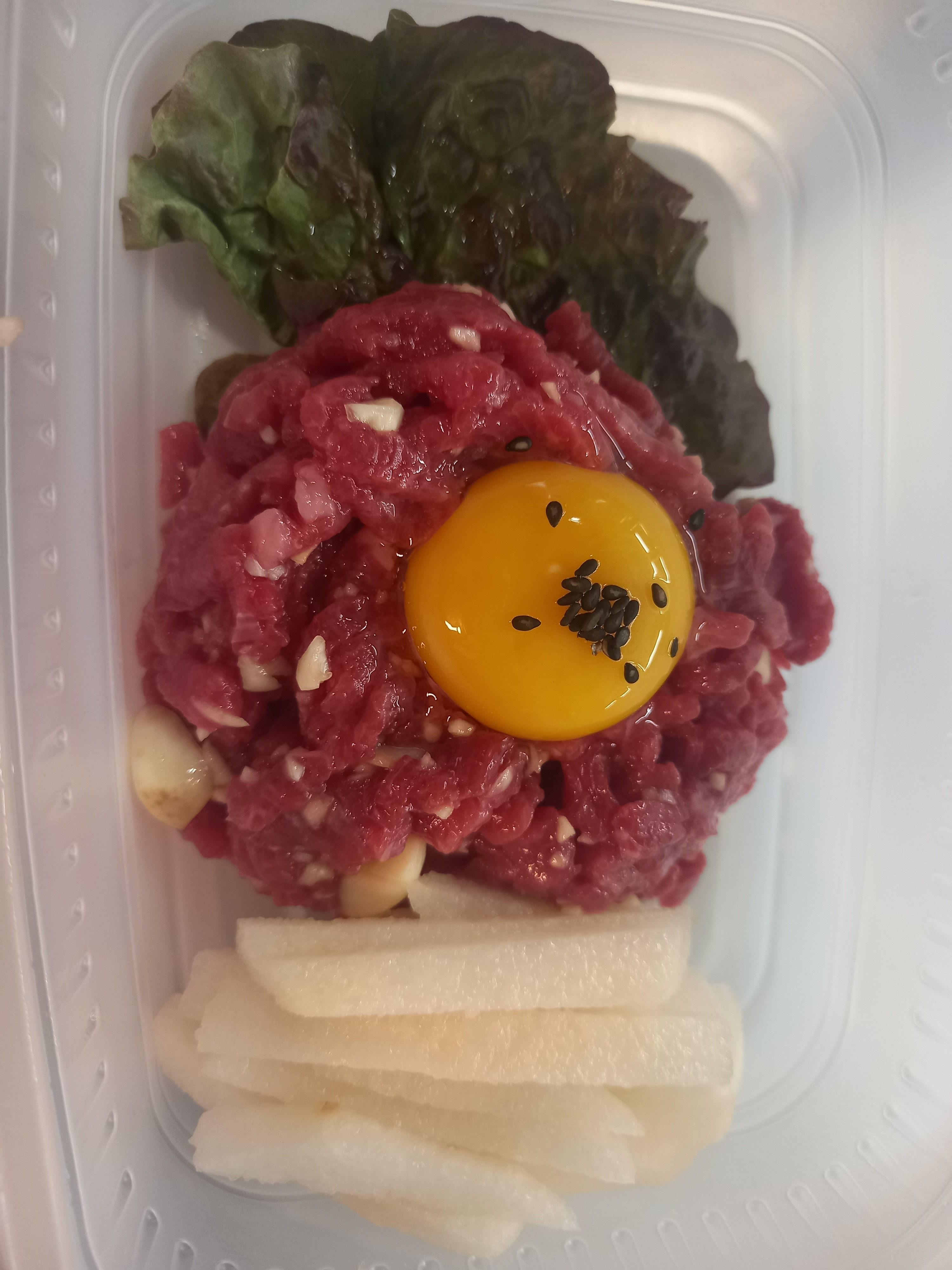 깔끔한김치와 시원한소고기무우국 정말돌아서면생각나구요 특히파김치는 사장님께서 담그신다는데 예술입니다 육회는 포장해왔는데 사장님만의비법인가 입에착착감기는술을부르는맛입니다 한우진대가 군산소고기맛집입니다