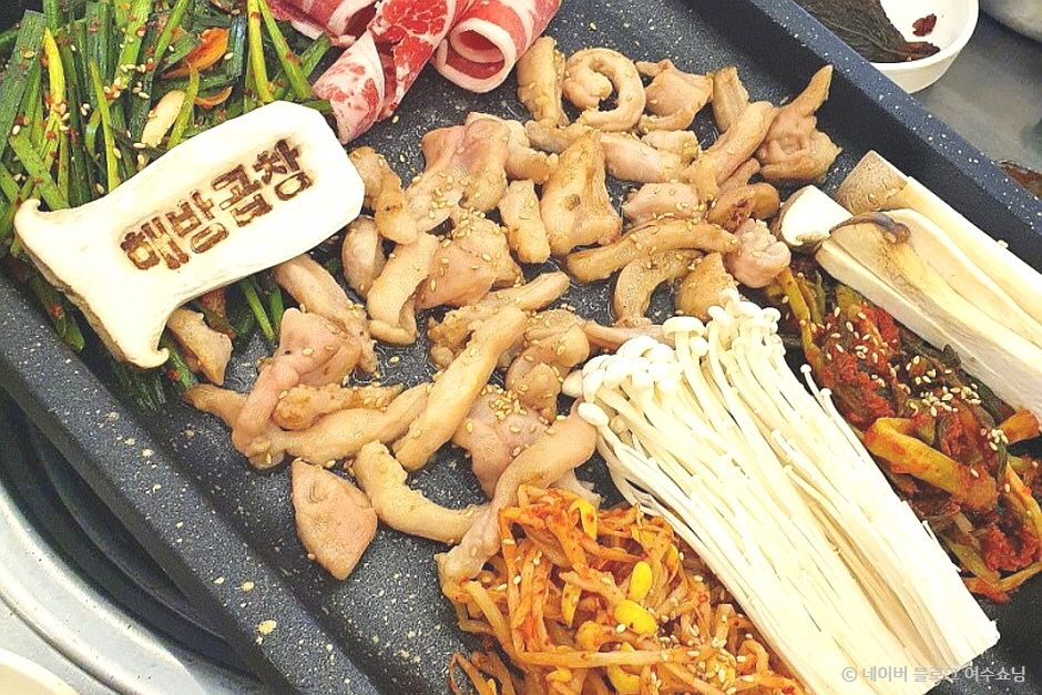 여수문화거리 중앙에 있는 해방곱창 여문점은 소곱창, 대창, 막창을 주메뉴로 판매하며, 구이뿐만 아니라 전골도 함께 즐길 수 있는 곳이다. 하얀 벽돌로 인테리어 되어 있는 내부는 동그란 철판 드럼통 테이블을 에워싼 5~6개 정도의 의자들이 놓여 있다. 레트로한 느낌이 나며 전체가 투명창이라 노상에서 곱창을 즐기는 분위기가 난다. 깔끔하고 깨끗한 주방은 음식에 대한 신뢰감을 높여준다. 주문하면 콩나물국과 계란찜, 묵사발이 먼저 제공된다. 주차장은 따로 없기 때문에 여서동 공영주차장을 이용하거나 갓길에 해야 한다. 주변에 여문공원, 그루터협동조합 등이 있어 연계 관광하기 수월하다.