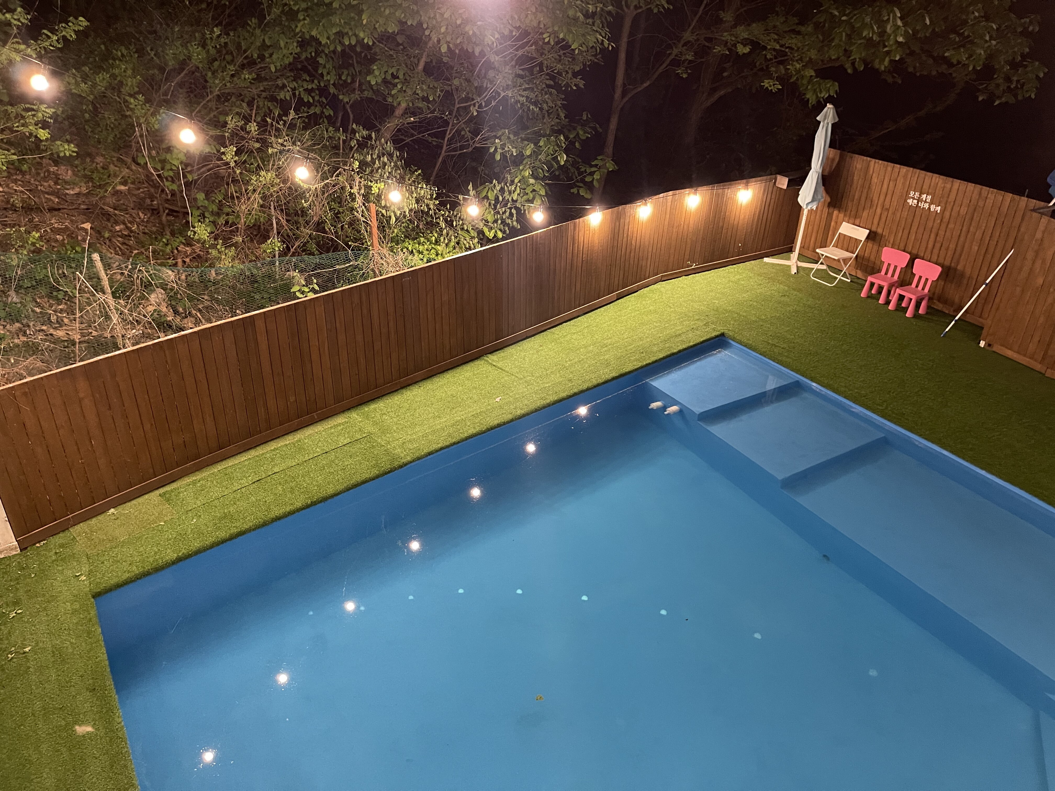 물을 좋아해서 수영장을 곧잘 다니는데 계단이 좁거나 턱이 높거나 공간이 넓지못하거나 물높이가 낮거나 하면 불편하더라구요. 근데 프로 불편러인 저희에게 딱맞는 공간 같아서 온종일 예약하고 다녀왔어요. 덥지만 않았다면 산책로도 잔디 마당이나 바베큐도 맘껏 이용했을텐데 덥다가 갑자기 소나기가 내렸다가 오락가락하는 날씨때문에 수영장이랑 실내공간만 이용했어요! 진짜 원 없이 수영하다 왔습니다! 자꾸 전화하는 저희가 귀찮을 법도 하실텐데 친절하게 대해주셔서 감사했어요!