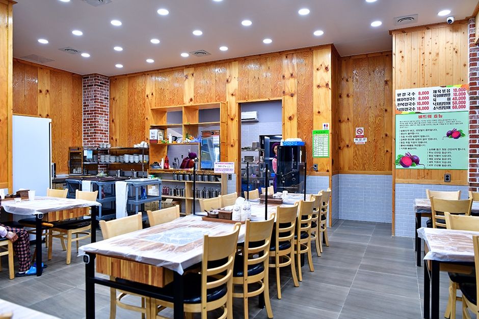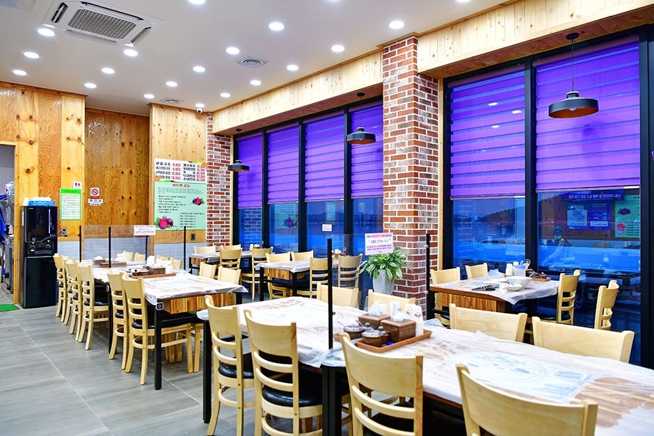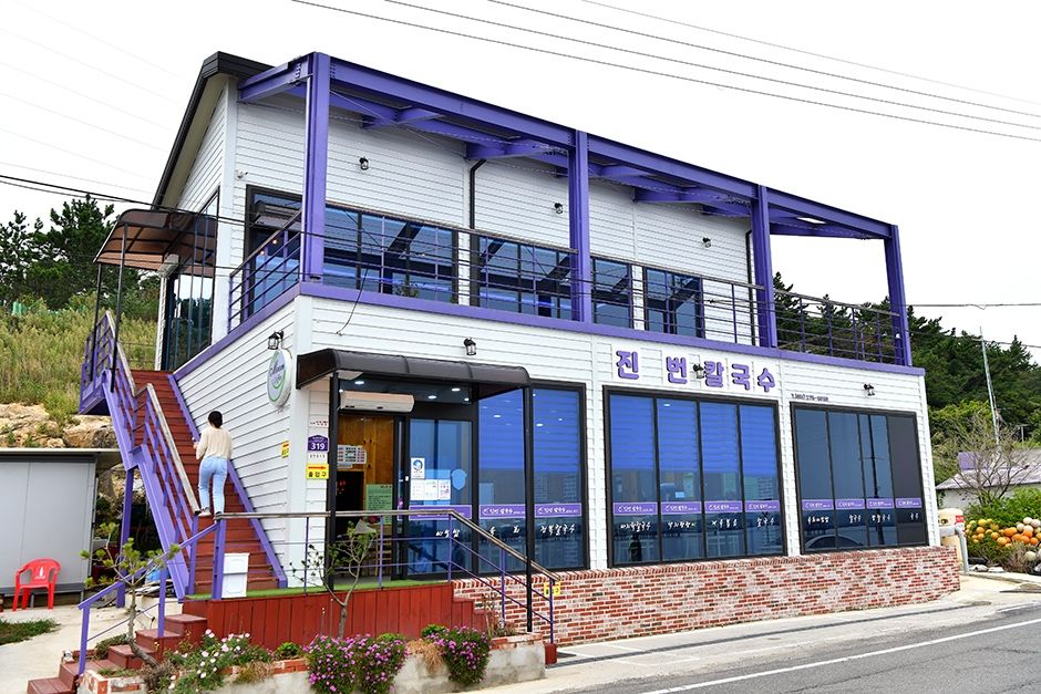 전남 신안군 안좌도에는 온통 보라색으로 물들인 이색적인 관광지가 있다. 바로 퍼플섬이다. 보라색 옷과 소품을 챙겨가면 입장료를 면제받을 수 있을 정도로 독특한 콘셉트를 자랑하는 이곳에 보라색 메뉴들을 선보이는 식당이 있다. 퍼플교 입구 가까이에 보라색 건물, 바로 진번 칼국수다. 이곳은 팥칼국수부터 제육볶음, 탕탕이까지 다양한 종류의 특산 메뉴를 취급한다. 그중에서 대표 메뉴는 전복 칼국수다. 커다란 냄비에 전복이 통째로 들어가 있어 보기만 해도 군침이 도는 비주얼을 자랑한다. 비트를 사용해서 만든 보라색 칼국수 면이 이곳만의 특징이다. 깊은 맛을 내는 육수에 들어있는 풍성한 야채와 시원한 국물이 일품이다. 이외에도 담백하고 걸쭉한 팥 고유의 맛이 잘 느껴지는 팥 칼국수도 인기가 좋다.
