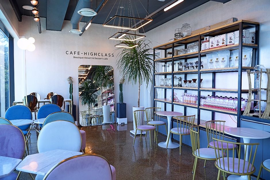 아름다운 여수 바다를 파노라마로 감상할 수 있는 오션뷰 카페 하이클래스는 같은 이름의 리조트에서 운영하는 카페다. 직접 로스팅한 원두로 만든 커피류와 수제 청으로 만든 에이드 등 다양한 음료와 케이크 등의 간단한 베이커리 디저트를 판매한다. 카페 하이클래스는 멋진 바다를 배경으로 그네를 탈 수 있는 포토존인 하이스윙이 있다. 이 그네는 카페 이용객과 리조트 투숙객만 이용할 수 있으며, 유료로 운영된다. 또한, 멋진 사진을 남길 수 있도록 그네를 탈 때 입을 드레스도 유료 대여해 준다. 다양한 사이즈와 컬러의 드레스가 준비되어 있으며, 그네를 타면서 끝자락이 펄럭이며 예술적인 사진을 찍을 수 있다. 이 밖에도 루프탑에는 천국의 계단과 유리 바닥 전망대 등 다양한 포토존이 있어 커피와 함께 추억을 남기기에 좋다.