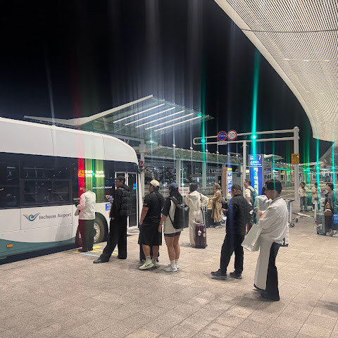 인천 제2터미널에는 무료 셔틀버스에서도 꽤 걸립니다.