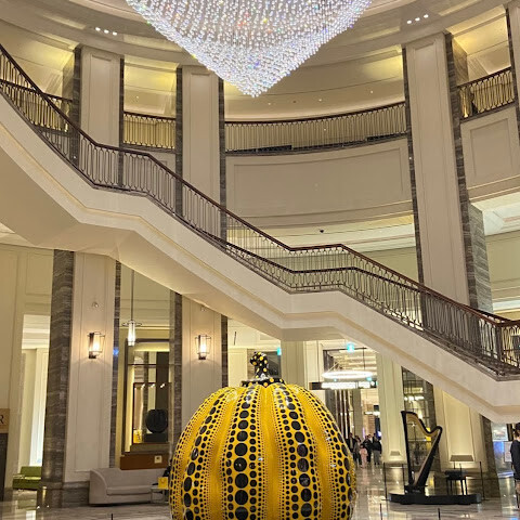 프런트 데스크 체크인은 매우 신속했고, 중국어가 가능한 직원도 있었습니다. 체크인 시 쿠폰북이 제공되었지만, 자세히 살펴보니 적용 가능한 할인은 없었습니다. 호텔 로비에는 다양한 예술 작품들이 전시되어 있는데, 특히 야요이 쿠사마의 거대한 호박 조형물이 사진 찍기에 좋았습니다. 시간이 된다면 일찍 체크인하는 것을 추천합니다. 저희는 오후 늦게 도착해서 모든 시설을 이용하지 못해 아쉬웠습니다. 원더 박스와 시머는 유료입니다. 시간이 된다면 갤러리도 방문해 보세요. 제가 묵어본 가족 친화적인 시설을 갖춘 호텔 중 이곳의 어린이 놀이 공간은 가장 고급스러웠습니다. 차와 다양한 장난감, 책이 구비되어 있었고, 공간도 매우 넓었으며, 직원들도 모두 친절했습니다.