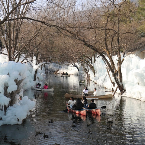 부산 인근 소도시에서 즐기는 당일치기 겨울 휴양지입니다. 남녀노소 누구나 즐길 수 있는 테마파크입니다. 썰매, 얼음낚시, 빙하 카누를 즐길 수 있습니다. 토끼 마을에서 토끼에게 건초를 먹이거나, 노를 저어 오리가 표류하고 목욕하는 모습을 구경할 수 있습니다. 가족끼리 즐기기 좋은 겨울 휴양지입니다.