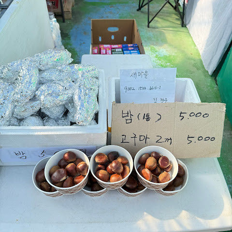 군밤이 5천원에 10개, 군고구마 5천원에 2개인데 다 맛있었어요~