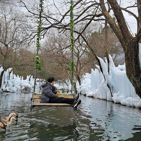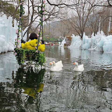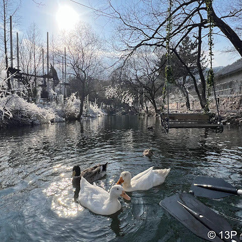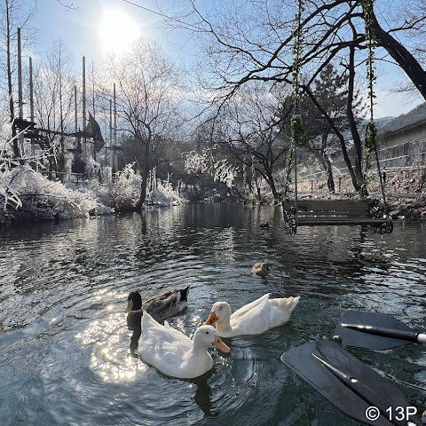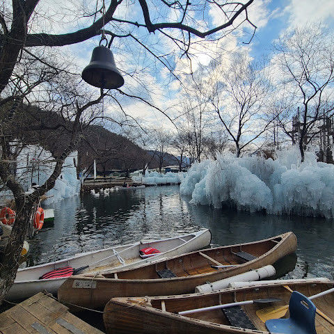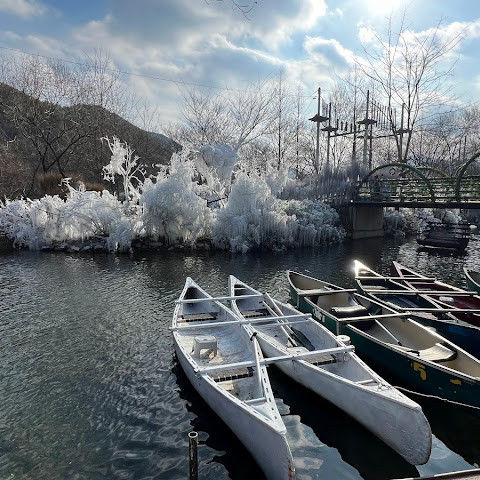 부산 인근 소도시에서 즐기는 당일치기 겨울 휴양지입니다. 남녀노소 누구나 즐길 수 있는 테마파크입니다. 썰매, 얼음낚시, 빙하 카누를 즐길 수 있습니다. 토끼 마을에서 토끼에게 건초를 먹이거나, 노를 저어 오리가 표류하고 목욕하는 모습을 구경할 수 있습니다. 가족끼리 즐기기 좋은 겨울 휴양지입니다.