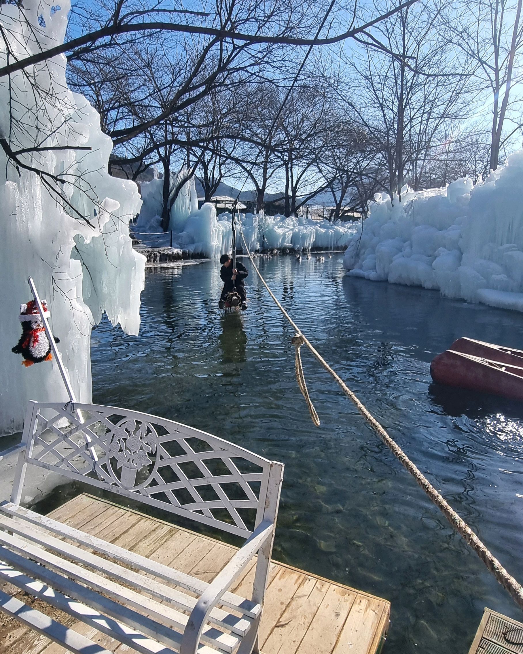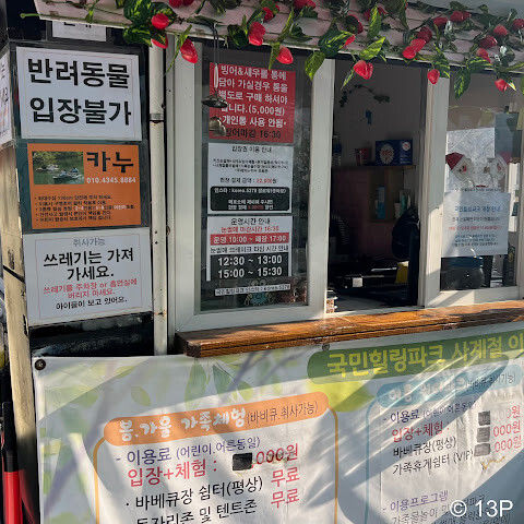 겨울에는 빙하, 여름에는 정글이 펼쳐집니다. 안전 수칙을 잘 지키시기 바랍니다. 미끄러워 넘어지기 쉽고, 균형 감각이 약한 사람은 부상을 입을 수 있습니다. 넘어져 구급차를 부르는 사람도 있고, 카누를 타다 빙하에서 떨어지는 사람도 있습니다. 공원은 크지 않으며, 이용 시간 제한도 없습니다. 입장료 외에 일부 품목은 유료입니다. 예를 들어 4인용 카누는 3만원입니다. 군고구마와 밤은 추가 요금으로 구매하실 수 있습니다. 밤은 고구마보다 맛있어요. 꼭 드셔보세요!