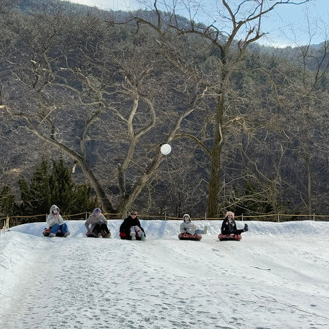 🎈카누탈 때는 발이 시렸는데 눈썰매 탈때는 햇빛이 눈에 반사되어서 그런지 발도 안 시렵고 엄마의 품처럼 따뜻했어요 산뷰를 바라보며 슈~웅~!! 시간가는 줄 😂 아니 시간 생각없이 더 아이처럼 놀다오고 싶었지만..