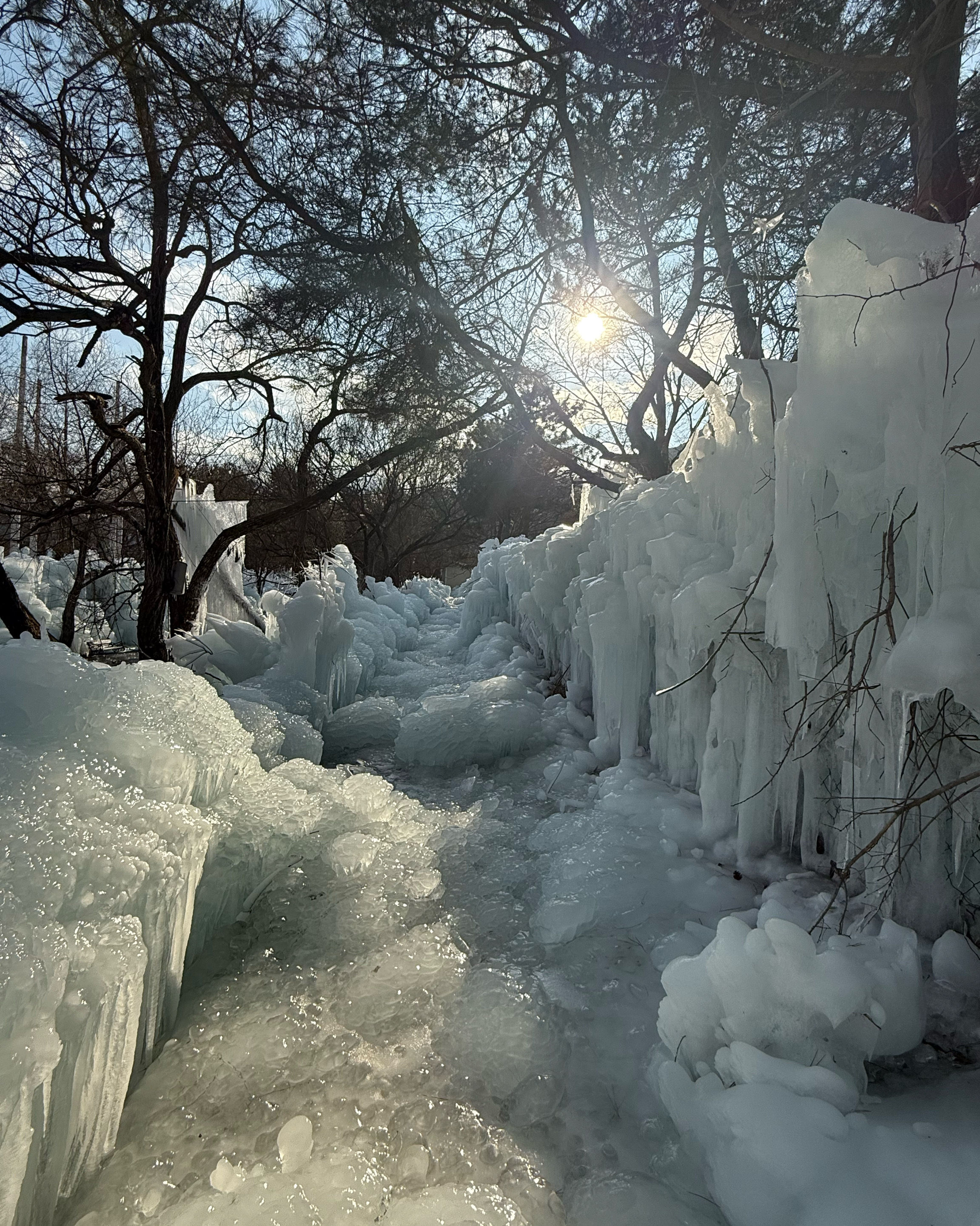 양쪽 벽이 있는 긴 산책로가 있고, 밟는 땅은 얼음으로 덮여 있지만 너무 미끄러워서 끝까지 가기가 너무 어렵습니다. 사진을 찍기에도 좋은 장소입니다.